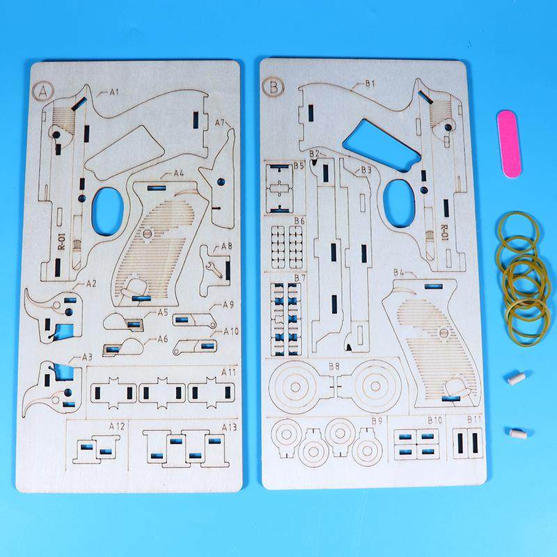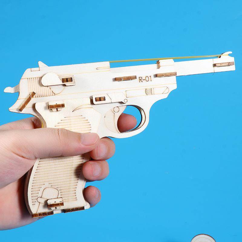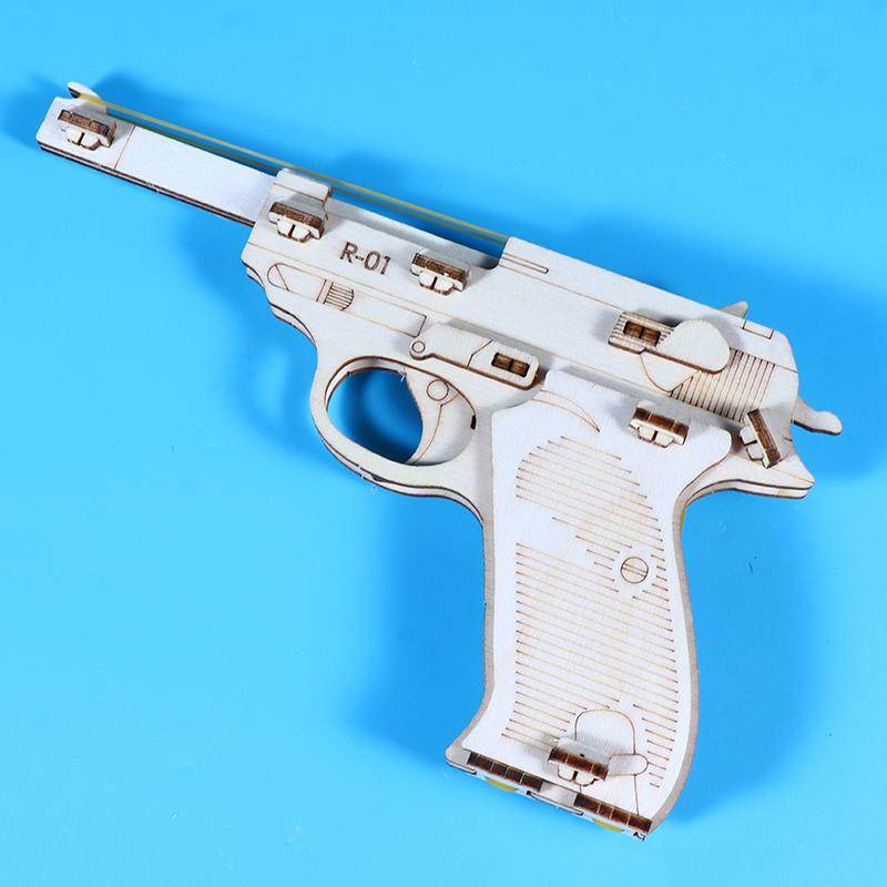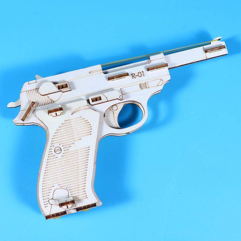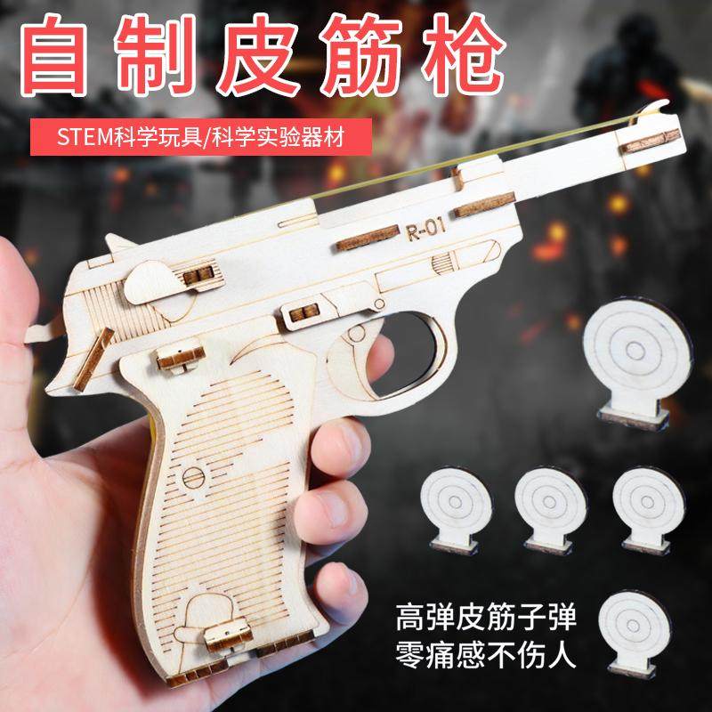 木质橡皮筋手枪科学手工小制作科学实验手工DIY发明益智拼装玩具