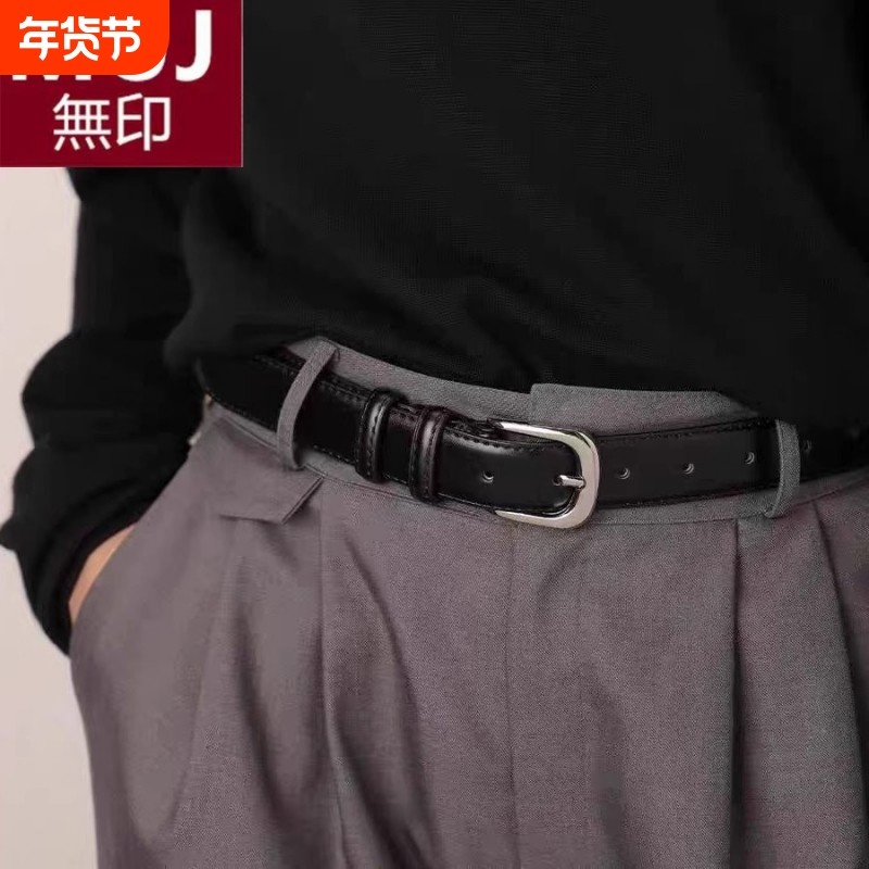 无印muj真皮皮带女士简约中性复古牛皮小众通勤百搭休闲黑色腰带