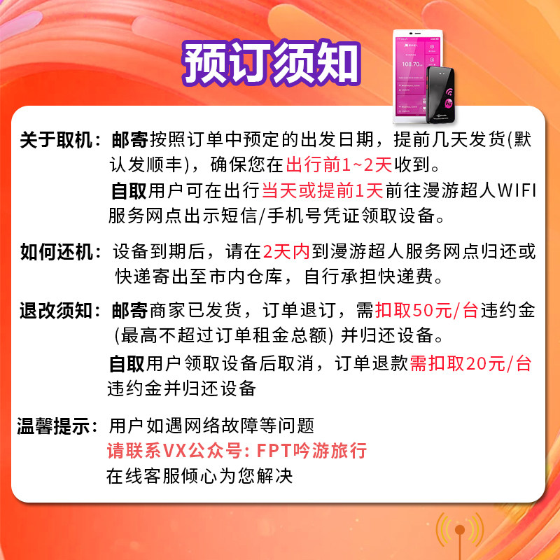 漫游超人4G5G【日本韩国通用WIFI租赁】手机无限流量随身移动上网