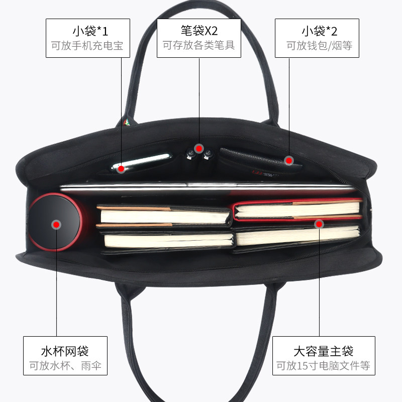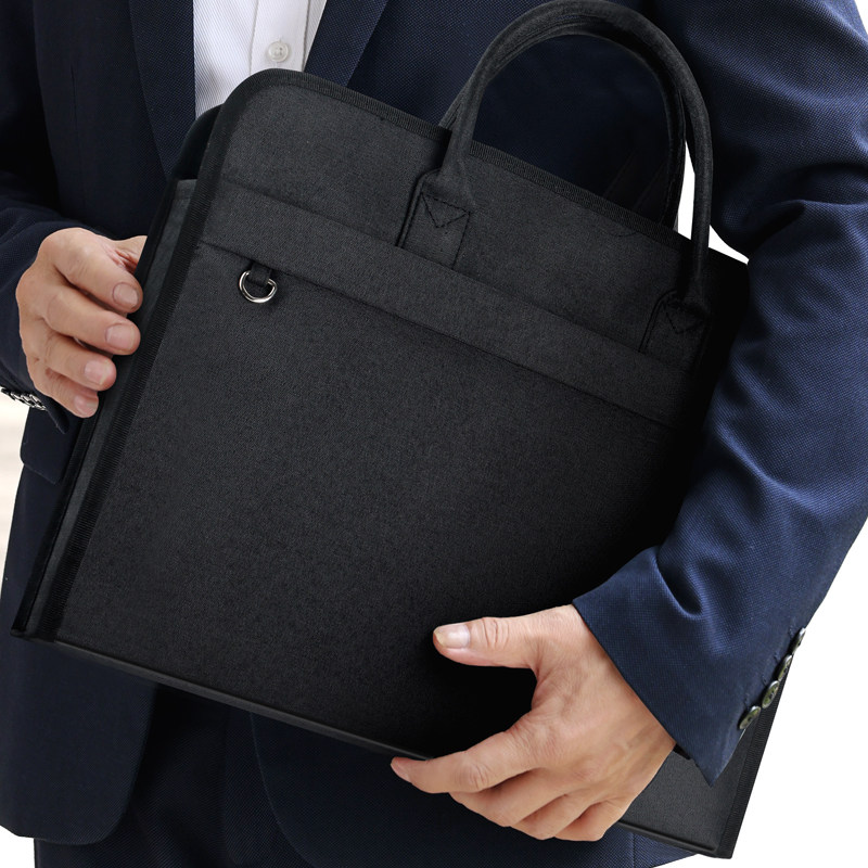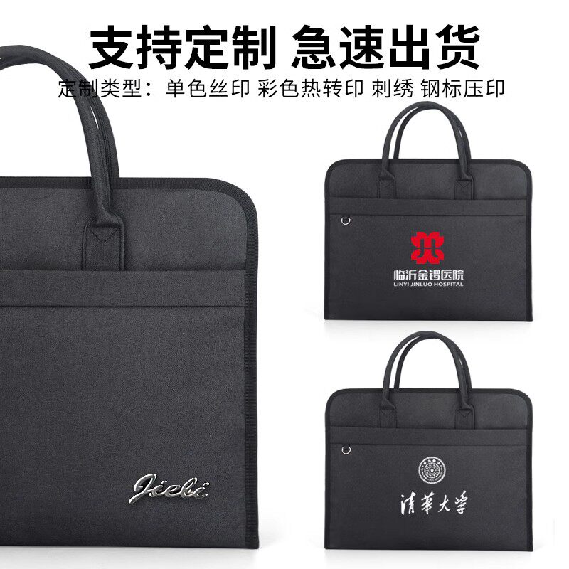 杰利男士大容量防水公文袋商务多层a4文件袋收纳拉链式帆布牛津布文件包手提公文包职业资料定制印刷logo
