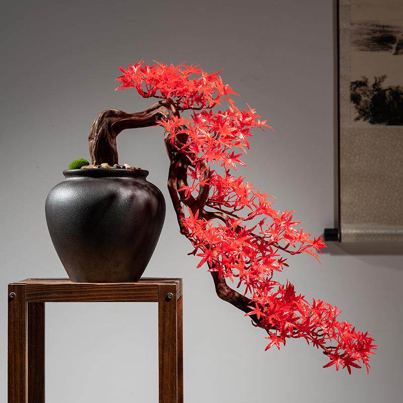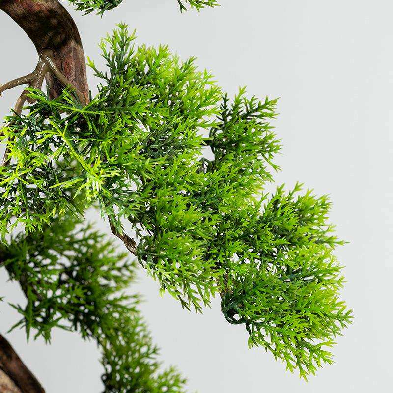 仿真崖柏盆景新中式假树迎客松客厅酒店茶室桌面摆件玄关居家装饰