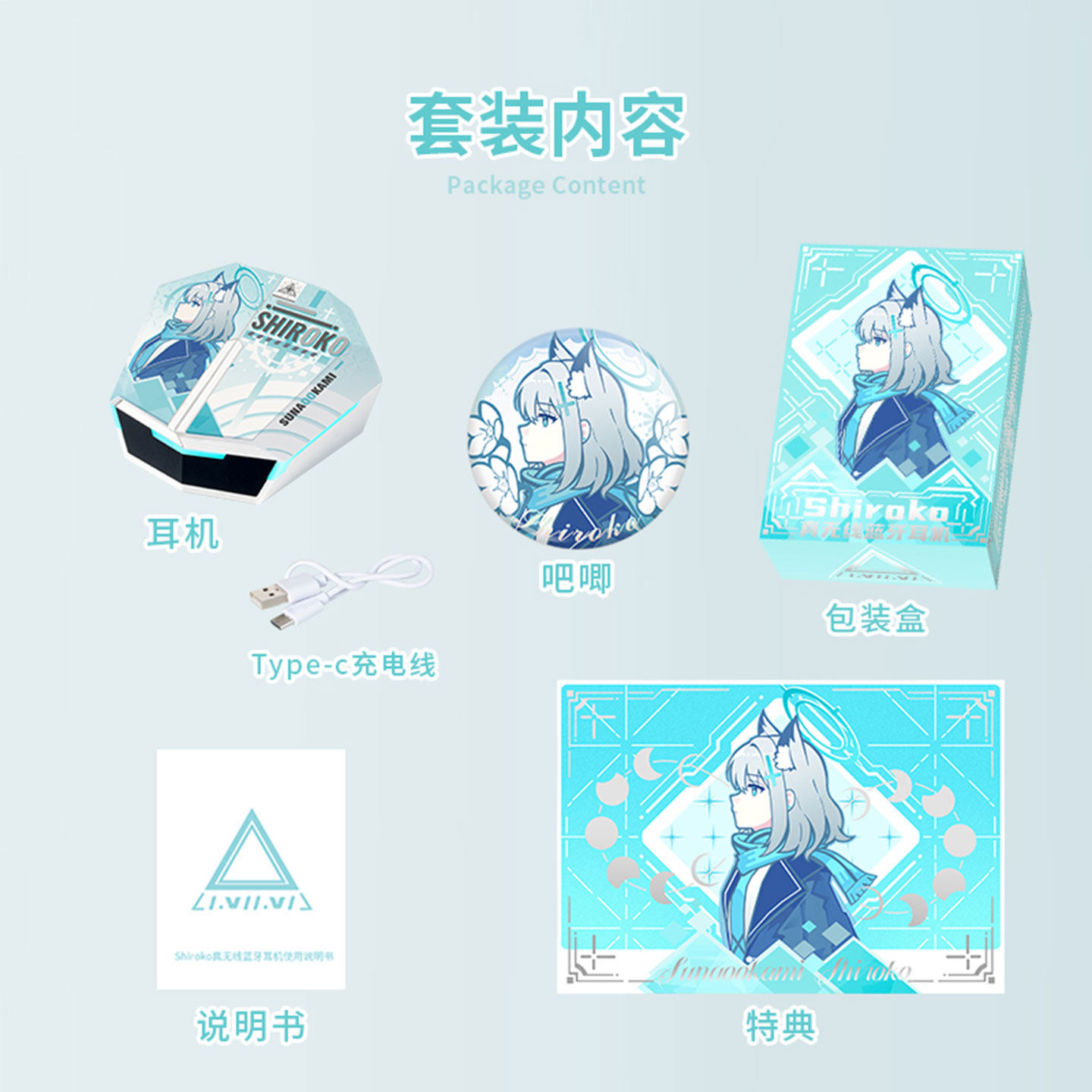 二次元碧蔚蓝砂狼白子联名提示音半入耳无线蓝牙耳机档案动漫周边