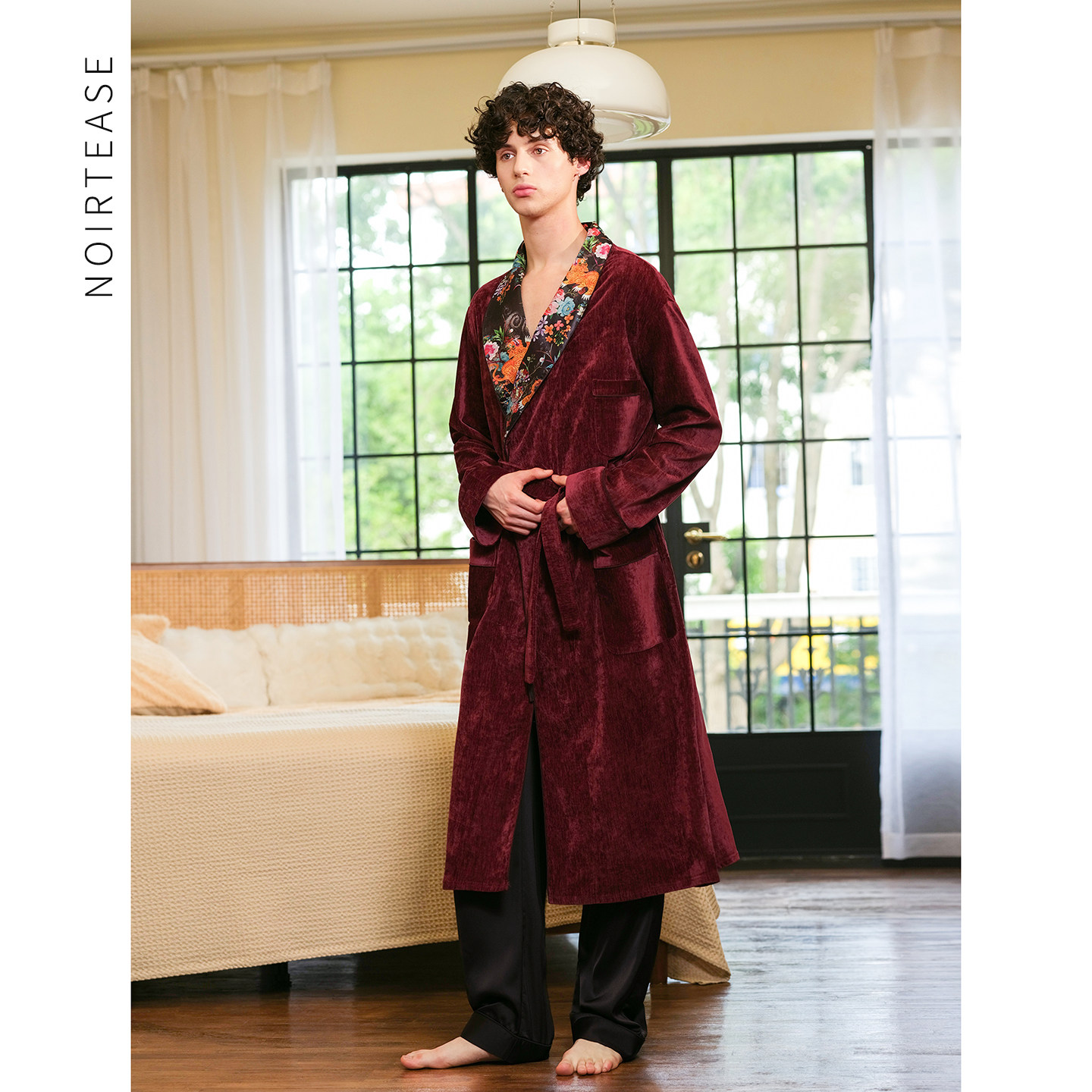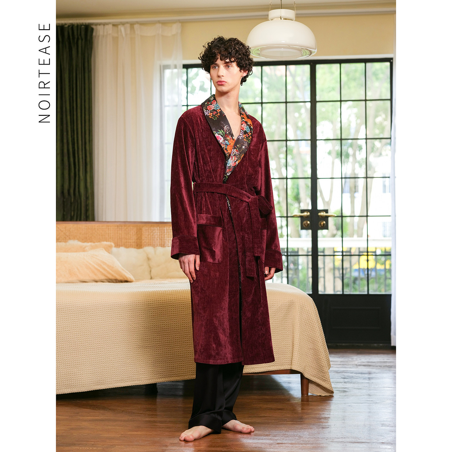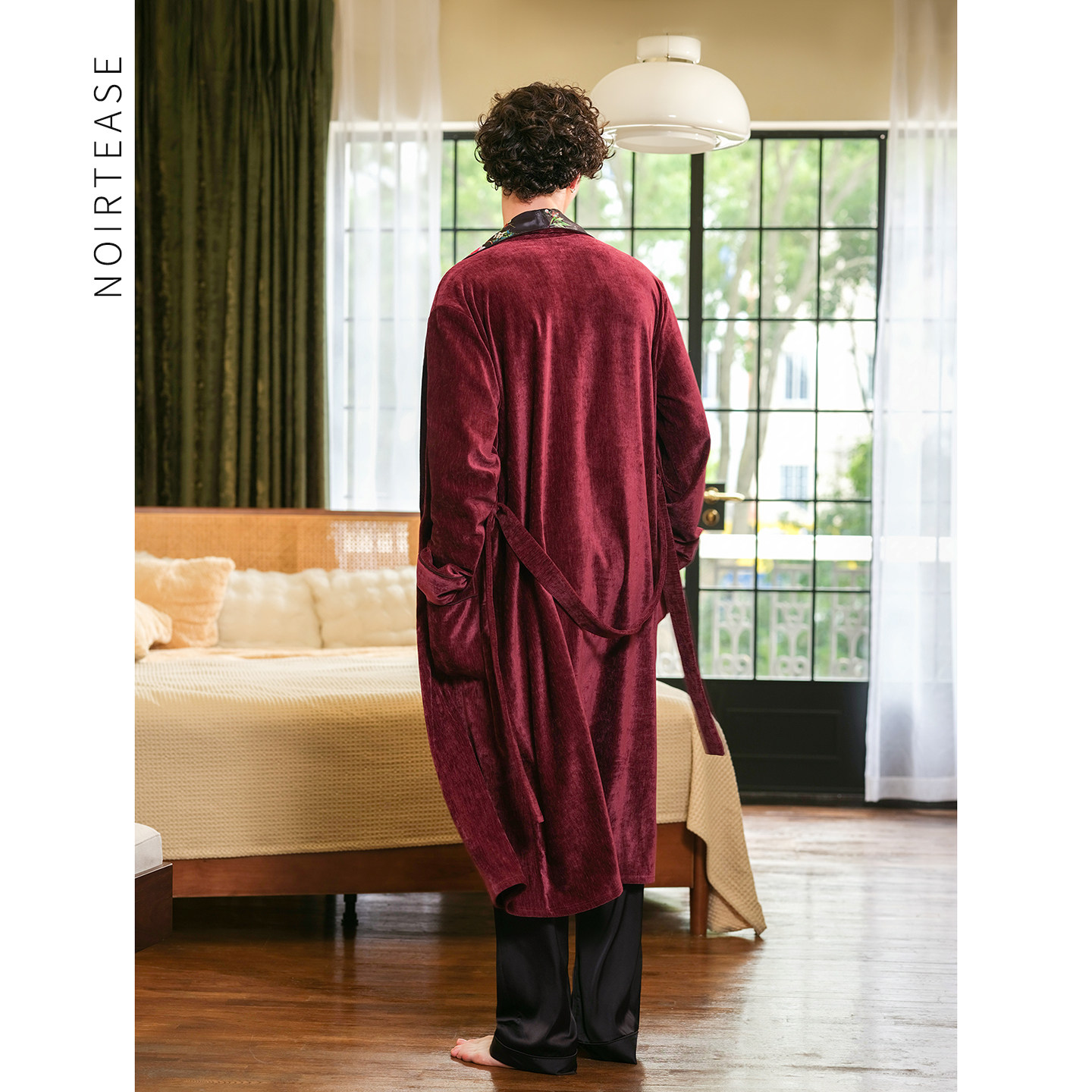 NT秋冬金丝绒柔软双面绒保暖薄绒睡衣男冬季中古风法式浴袍家居服
