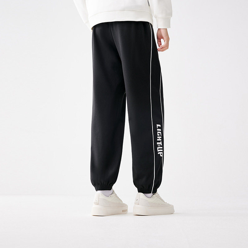 特步加绒卫裤女秋冬加厚款束脚裤针织裤休闲运动裤百搭黑色裤子