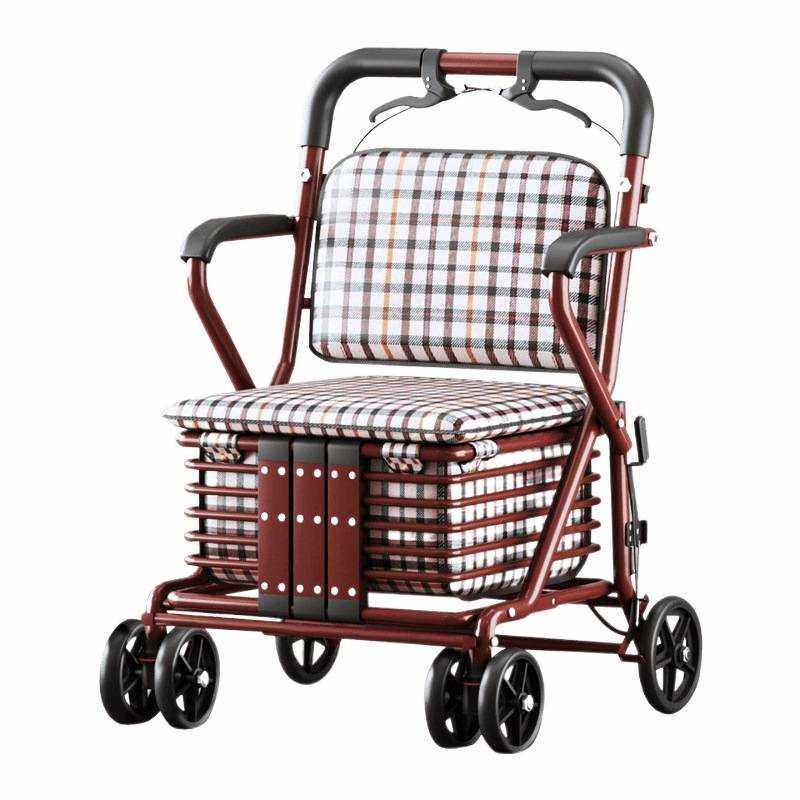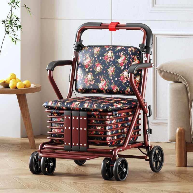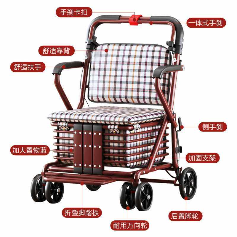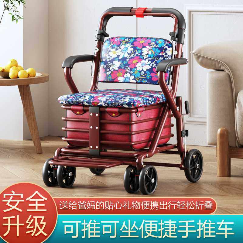 老年代步车折叠购物车座椅可坐四轮买菜助步可推小拉车老人手推车