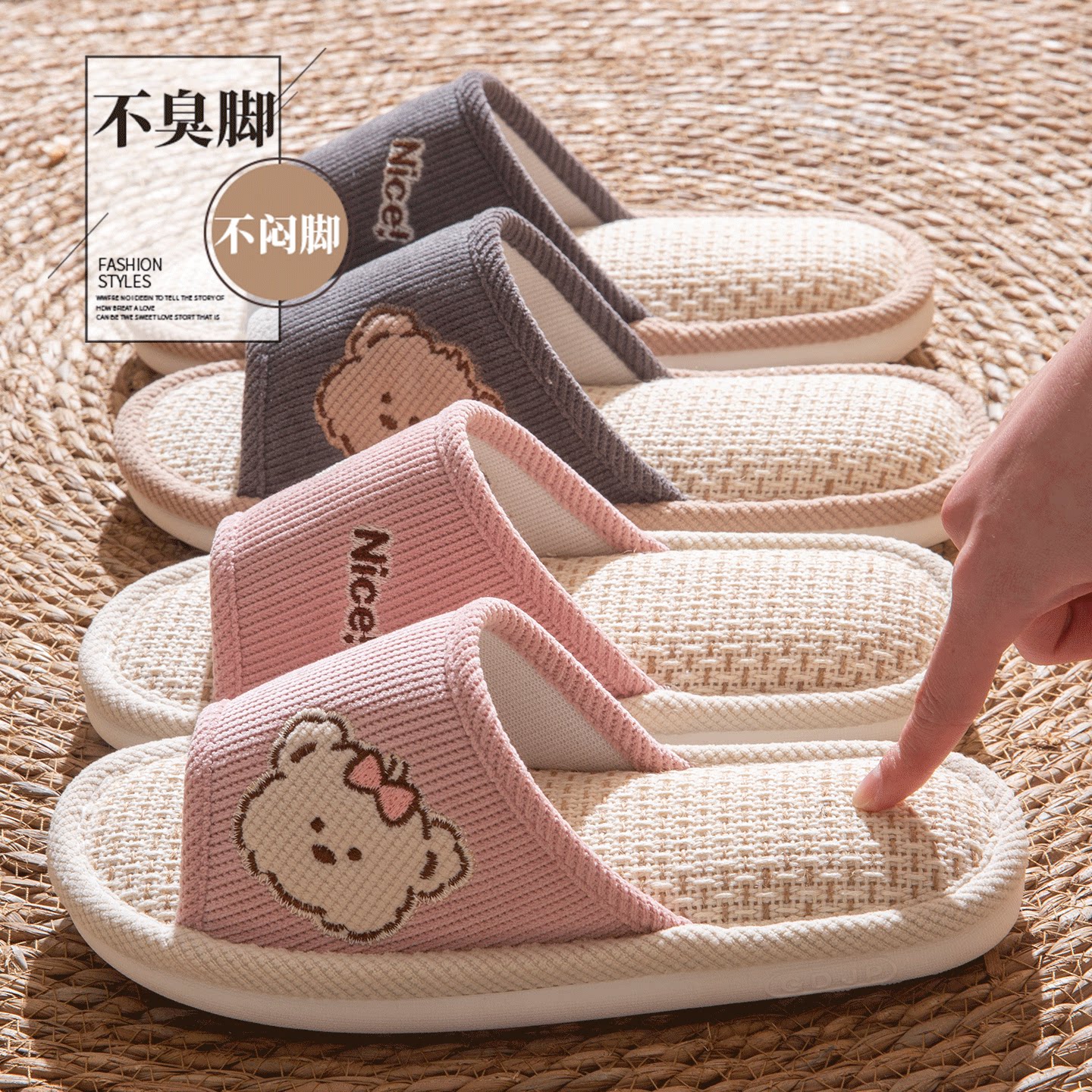 亚麻拖鞋女款室内家居防滑不臭脚吸汗透气四季家用棉麻布拖鞋情侣