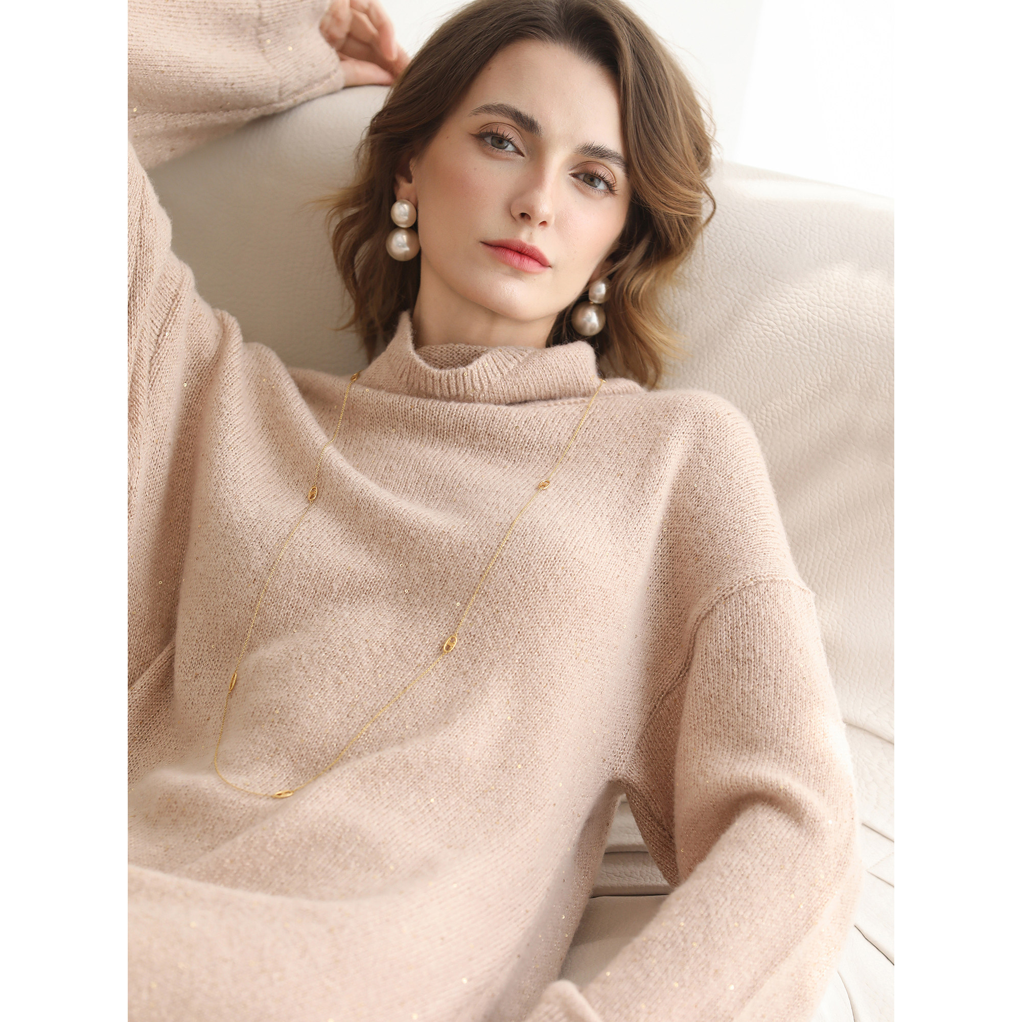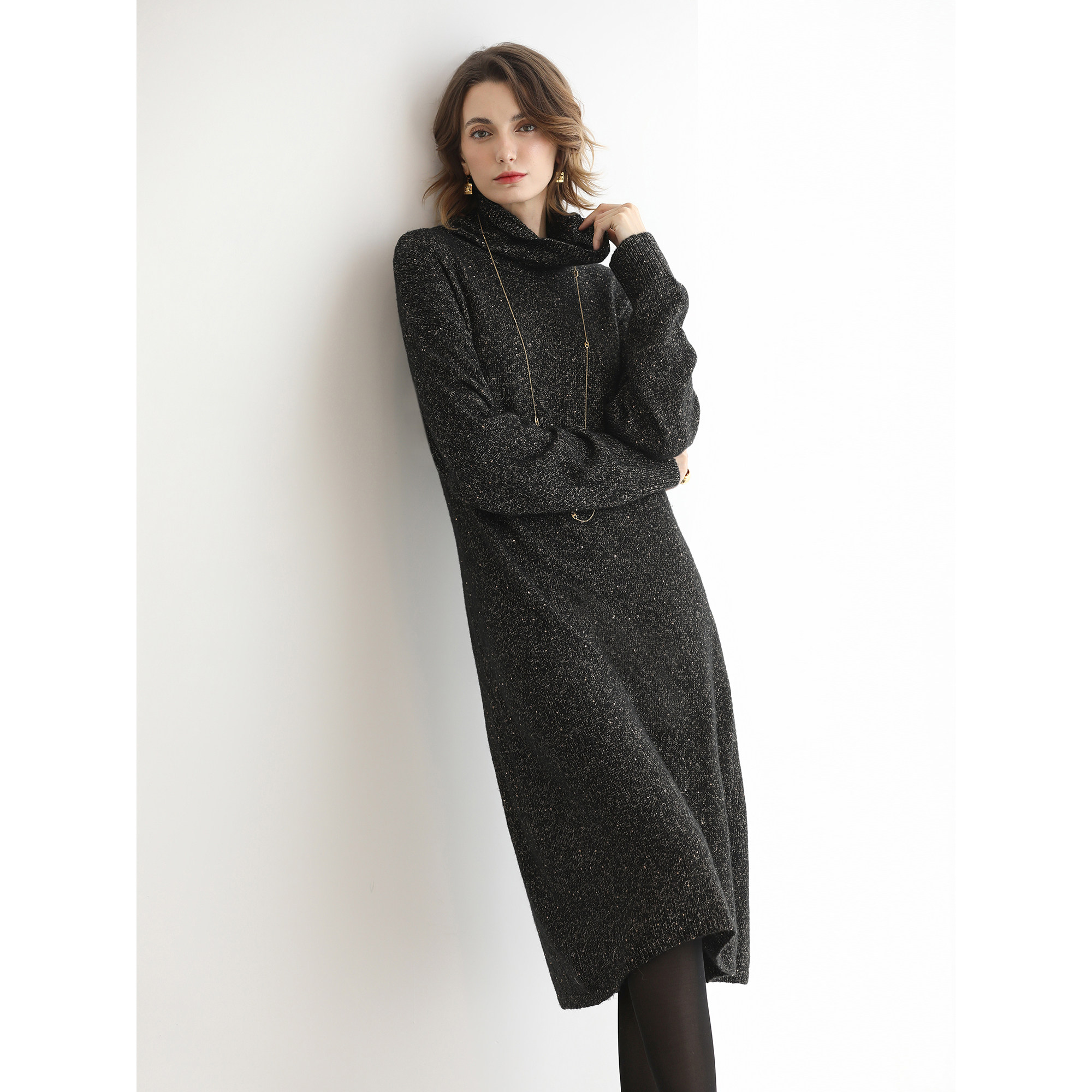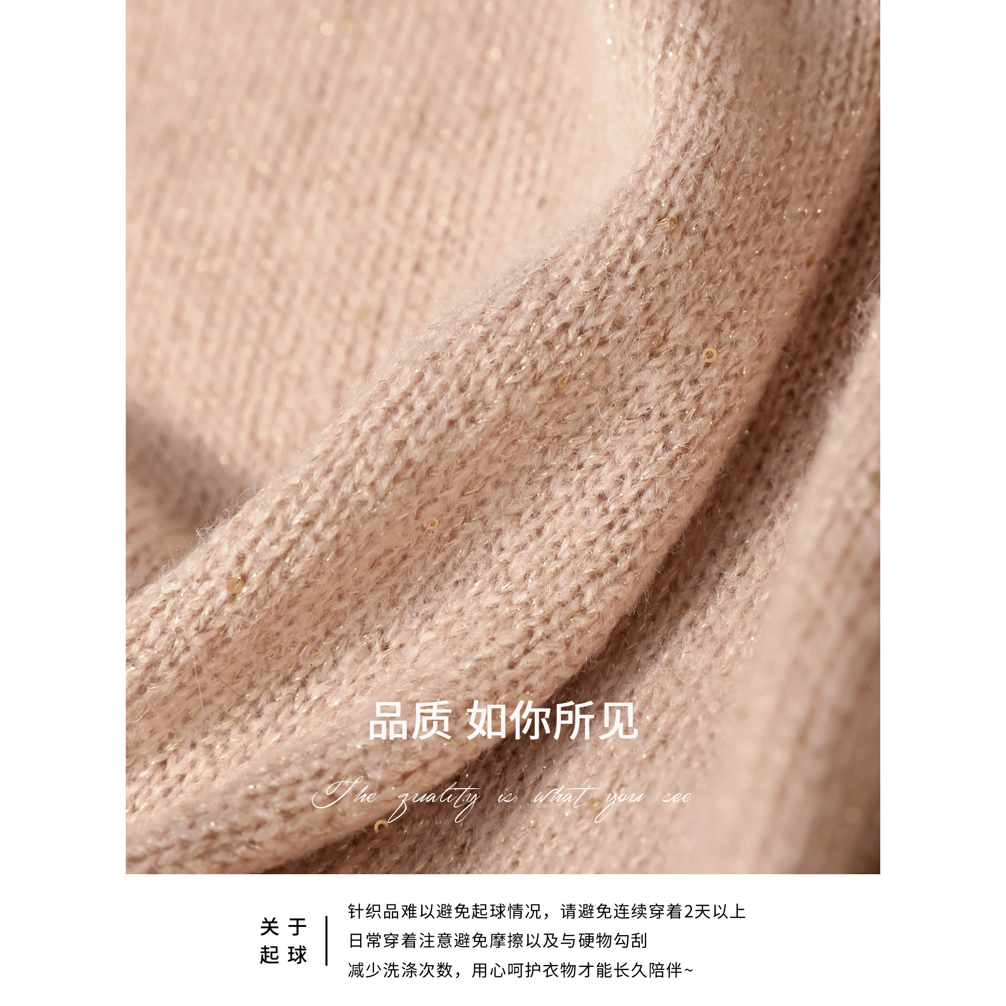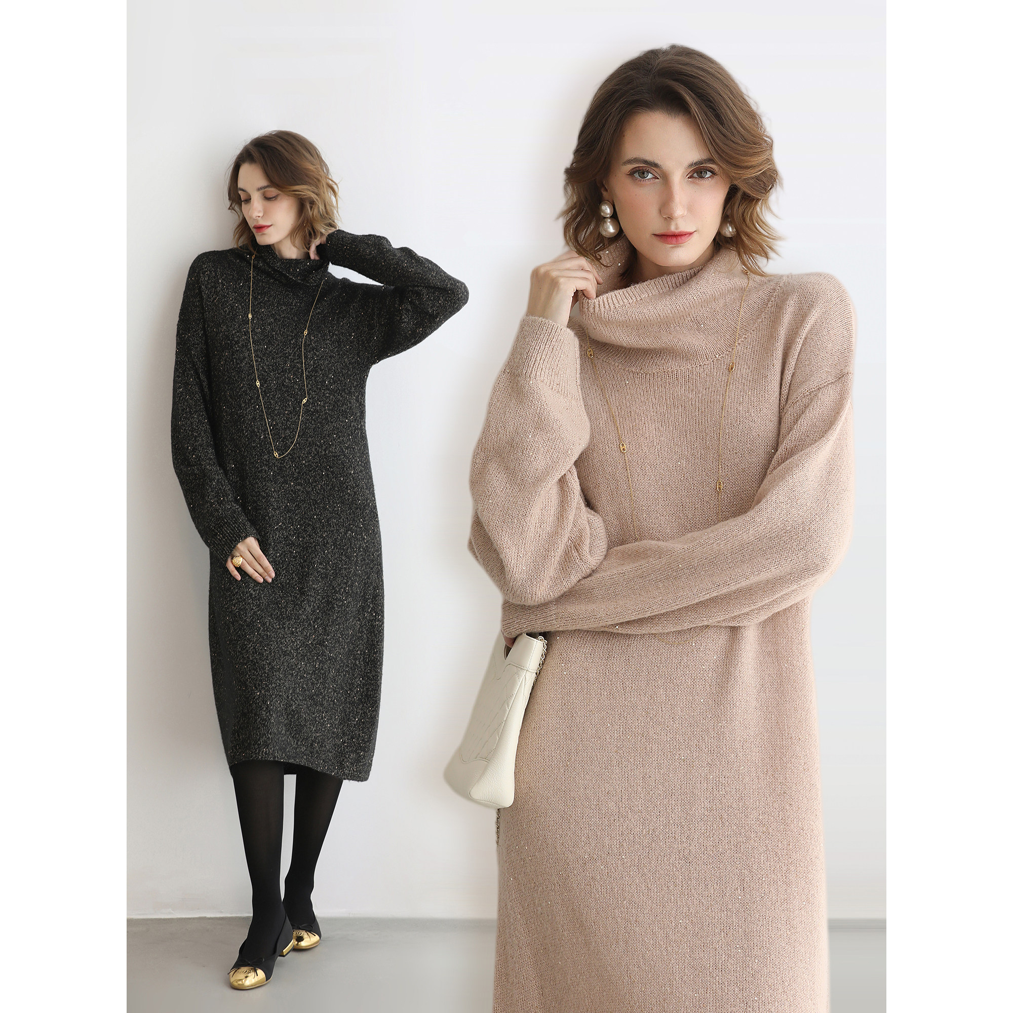 COCOBELLA秋冬新款温柔粉亮片针织连衣裙女高领毛衣裙FR3066