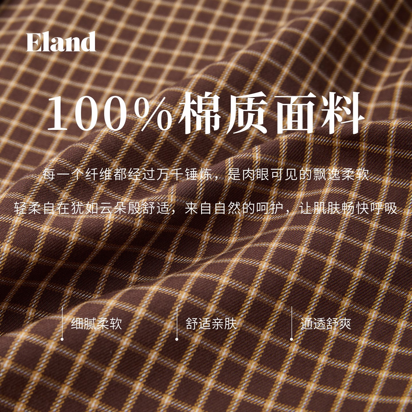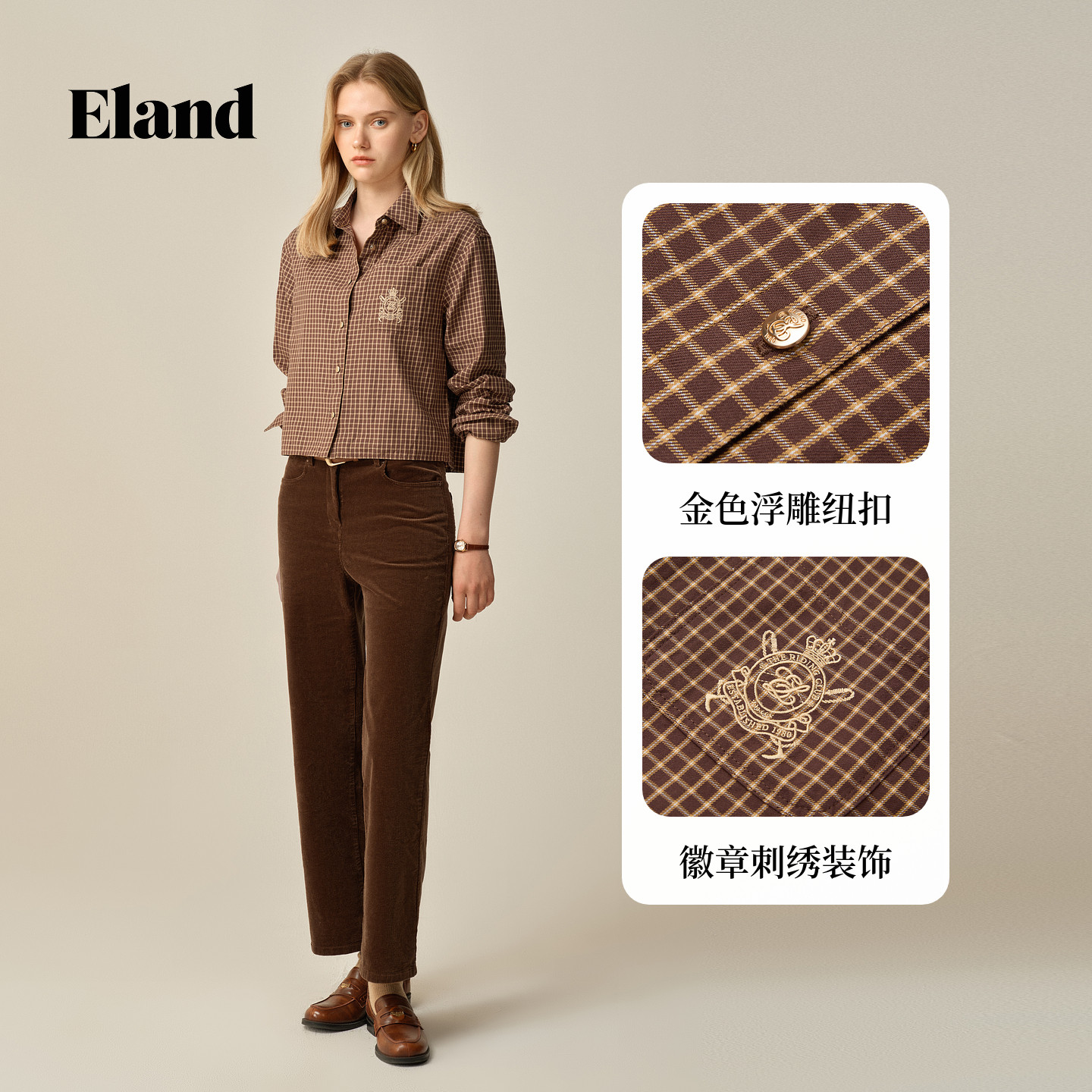 【100%棉】Eland衣恋衬衫女复古格纹金属扣上衣2025冬季新款
