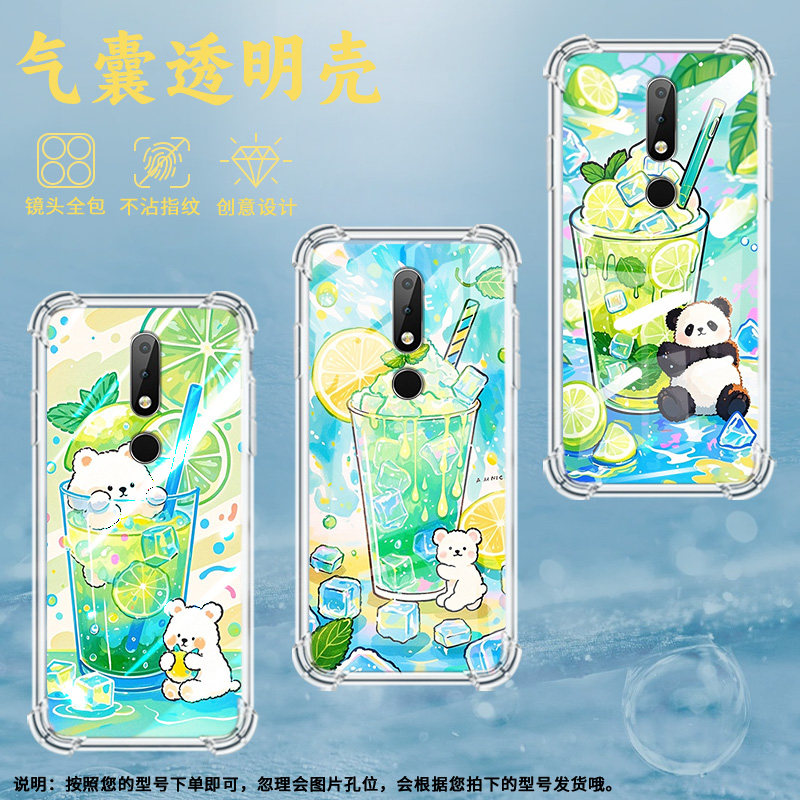 适用诺基亚X6手机壳全包边气囊壳柠檬冰沙杯Nokia防摔中国风时尚诺基亚X6男女款高级感潮流简约硅胶保护套