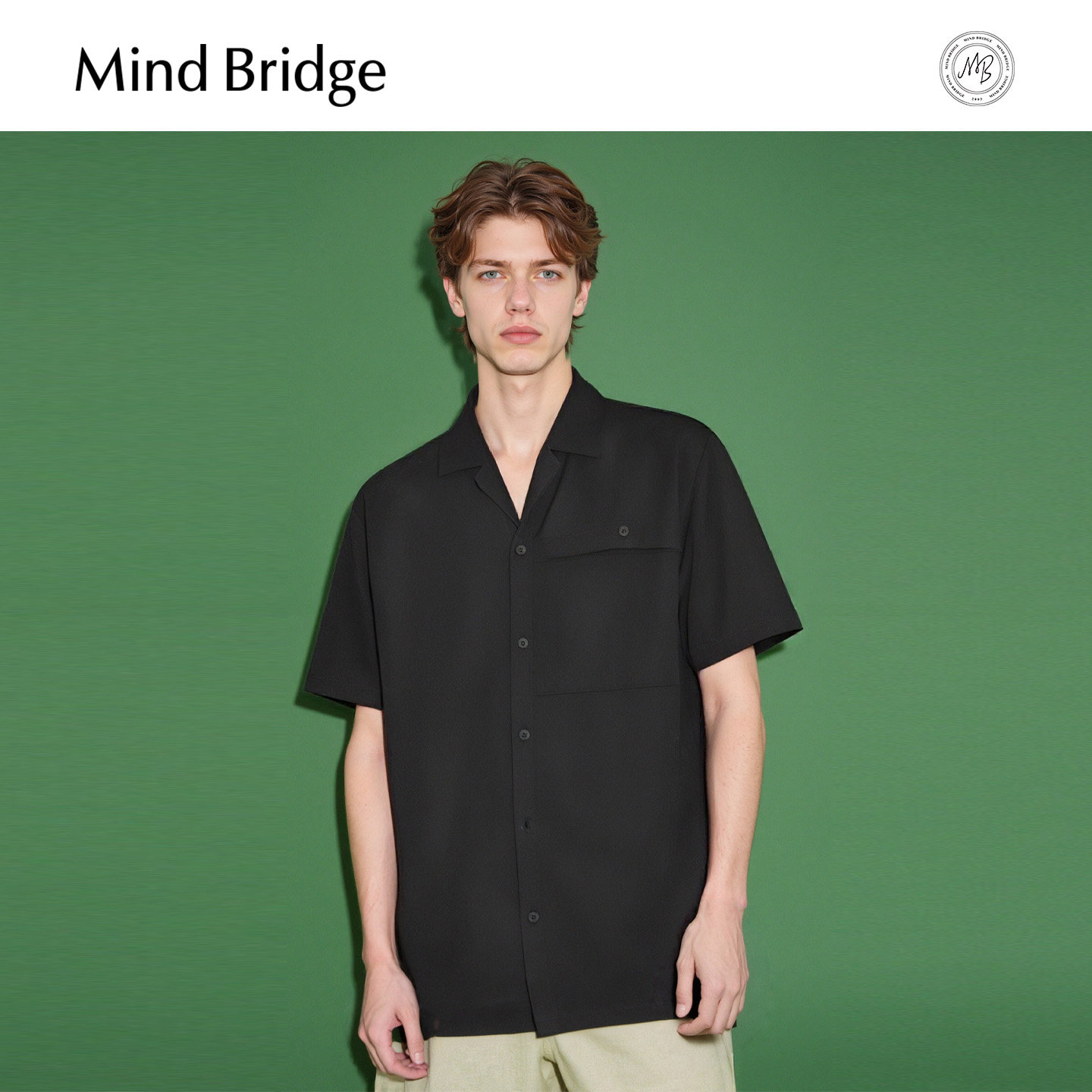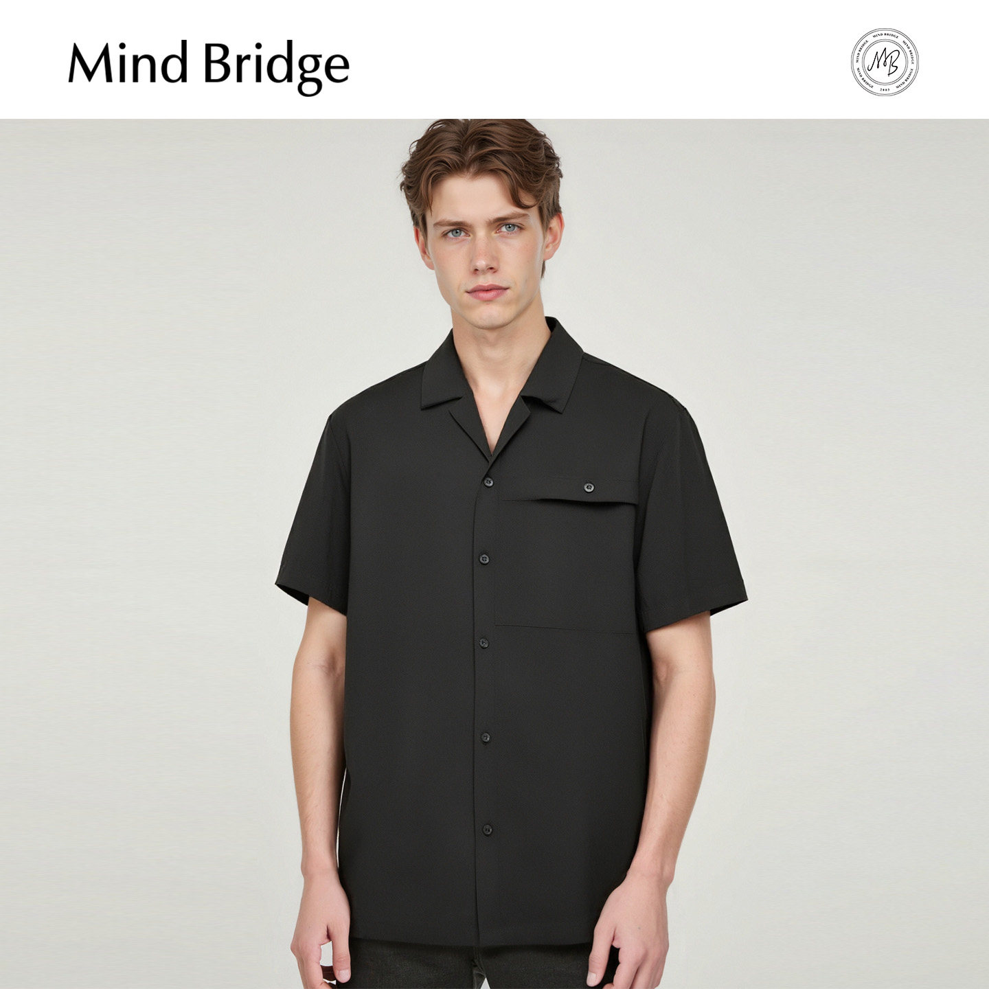 Mind Bridge【纯棉】2025夏复古简约短袖衬衣男士古巴领通勤衬衫