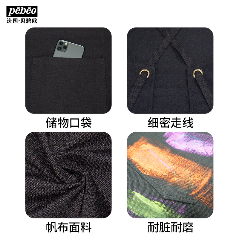Pebeo艺术家罩衫新款围裙家用绘画厨房罩衣围兜工具包咖啡餐饮理发园艺工作服围腰男女工作服