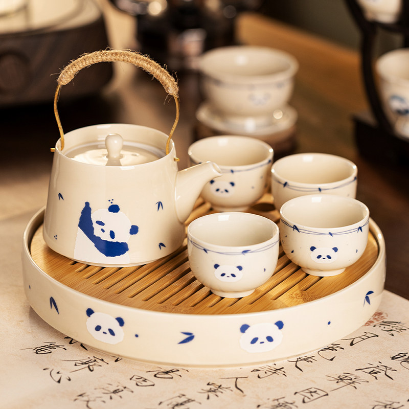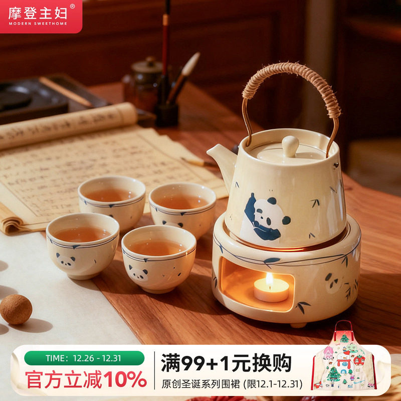 摩登主妇mototo熊猫泡茶壶围炉煮茶家用年轻人茶具套装一人饮茶杯