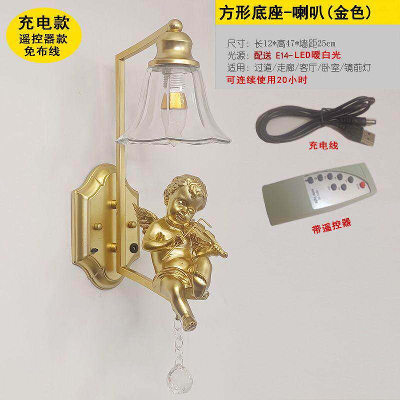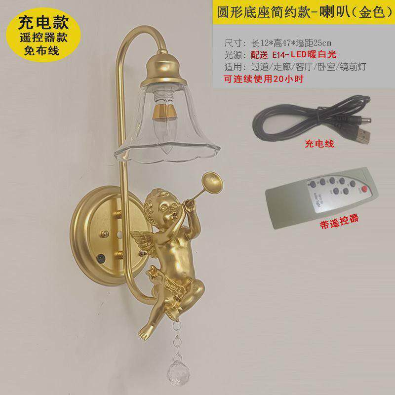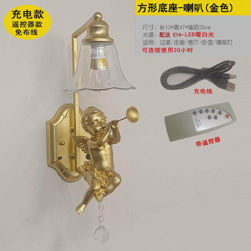 ms天使壁灯免布线阳台卧室床头灯客厅过道走廊充电墙灯网红法式壁
