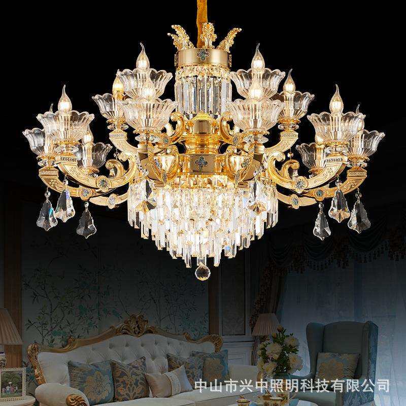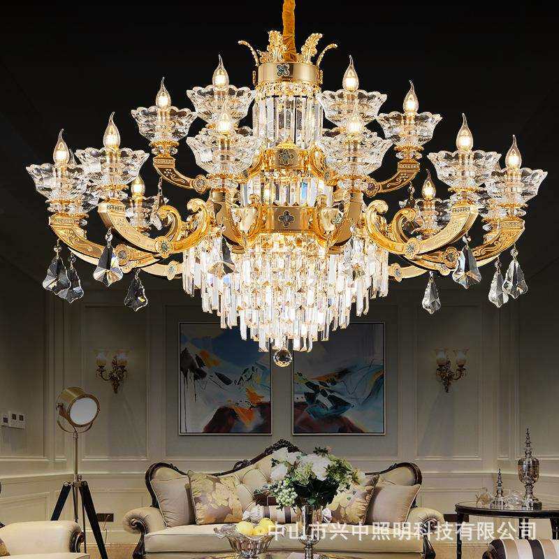 法式全铜客厅水晶吊灯欧式复式楼大厅脱蜡复古灯饰奢华大气别墅灯