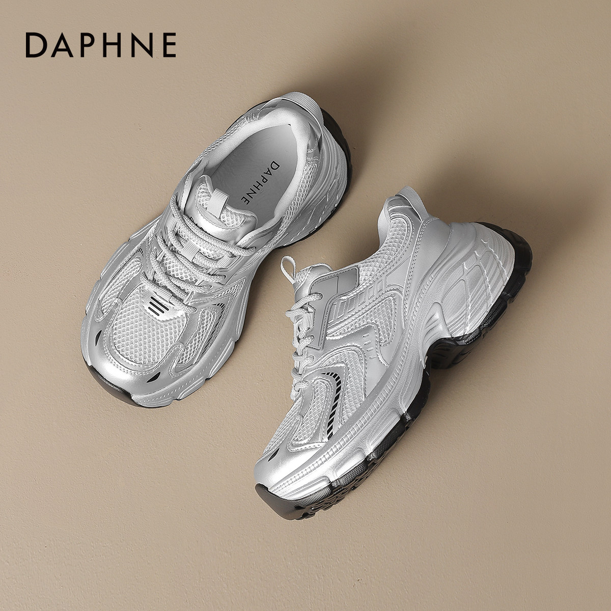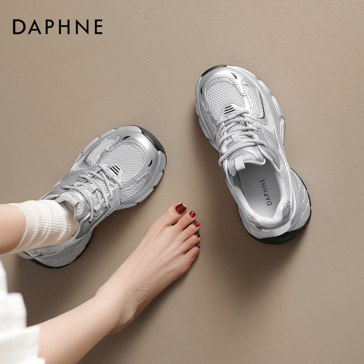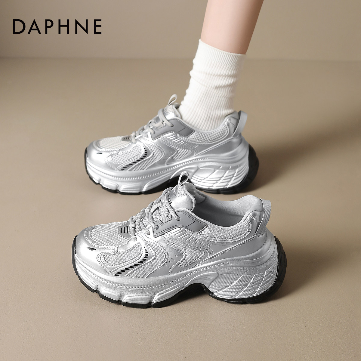 达芙妮银色老爹鞋女2026新款春季厚底增高女鞋春秋休闲运动鞋春款