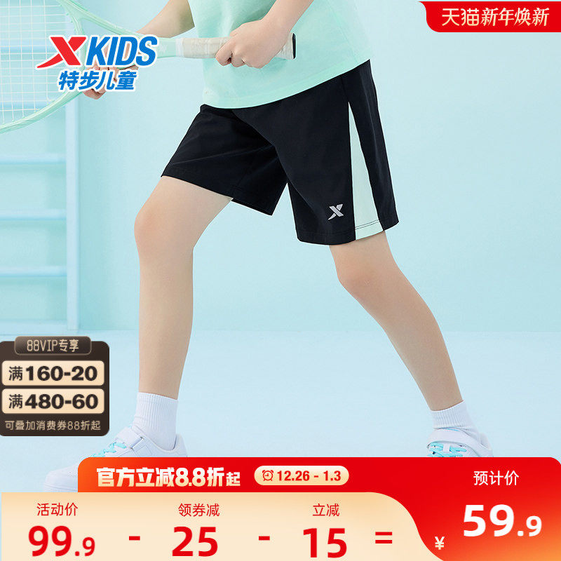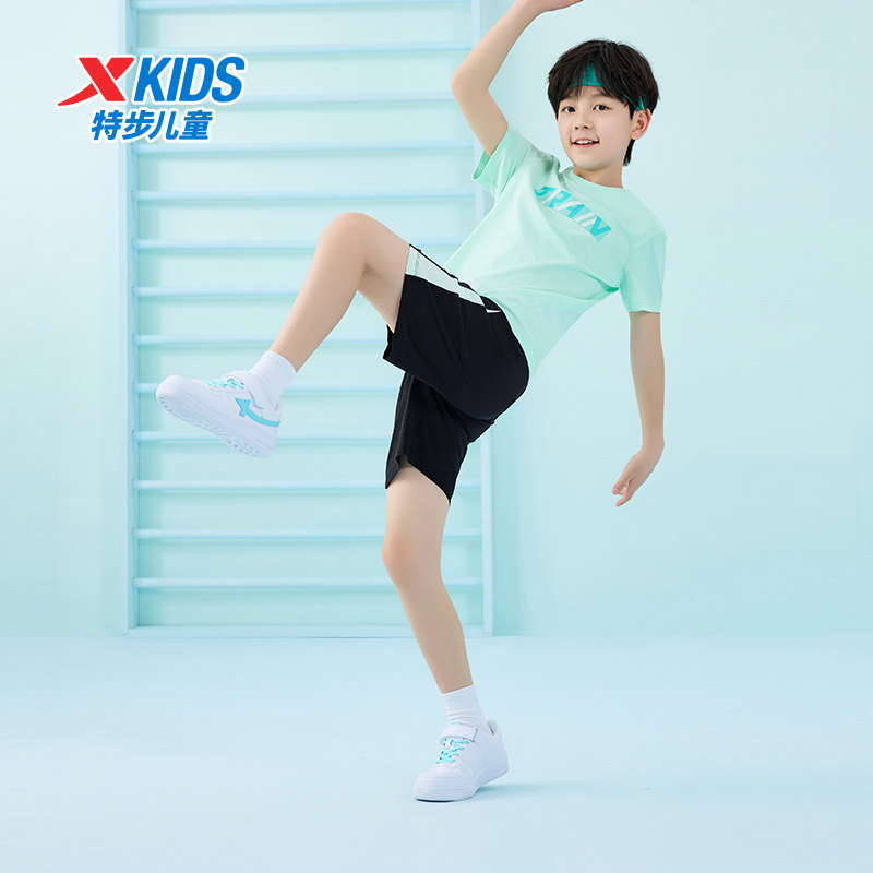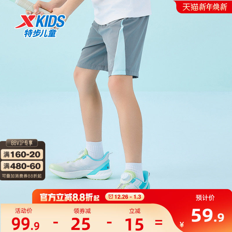 特步童装儿童速干短裤2025夏季新款男童拼接五分裤中大童裤子夏装