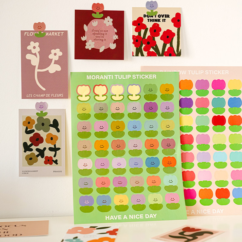 48贴彩色圆点贴纸莫兰迪色圆形标签贴纸ins风海报卡片手账封口贴