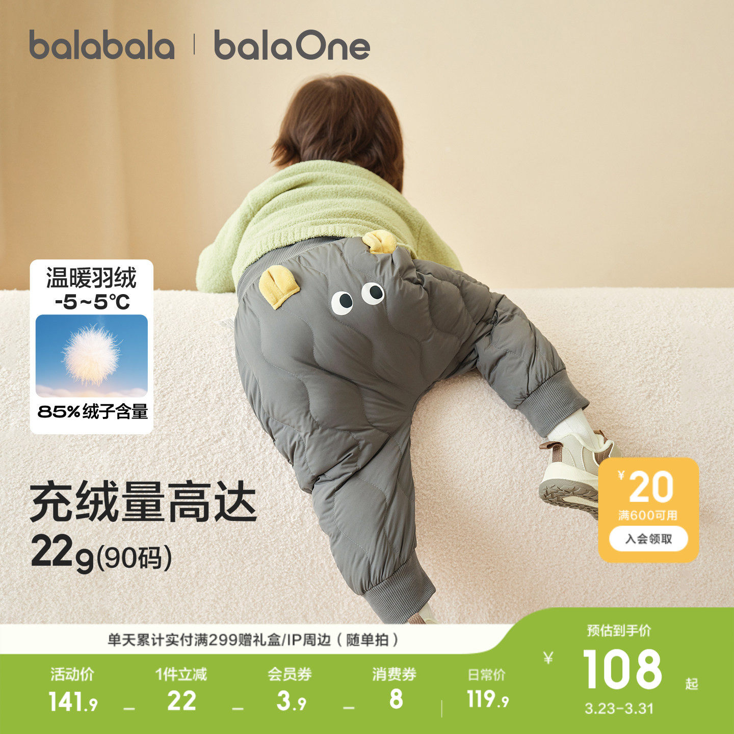 巴拉巴拉童装儿童羽绒裤男女童长裤宝宝2026冬装休闲高腰PP裤保暖