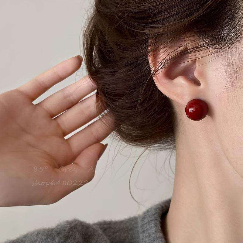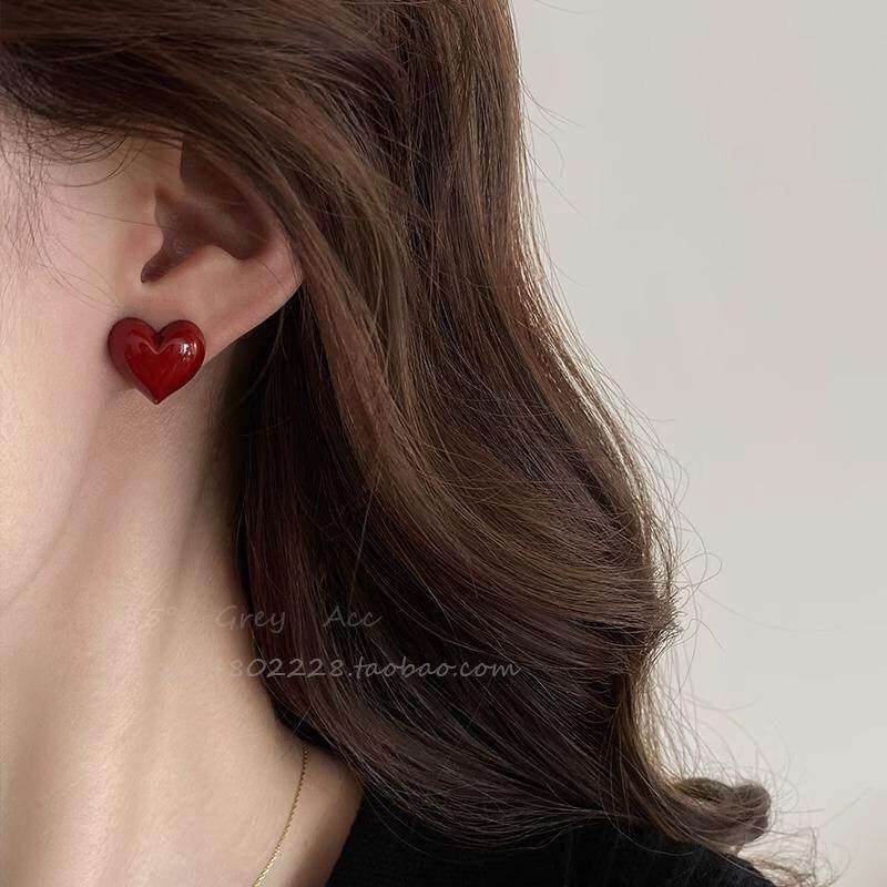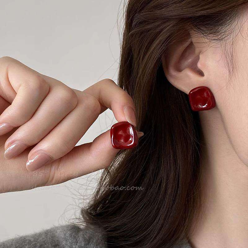 显白安可拉红珍珠耳钉女复古气质高级感耳环轻奢新款耳饰爱心方形