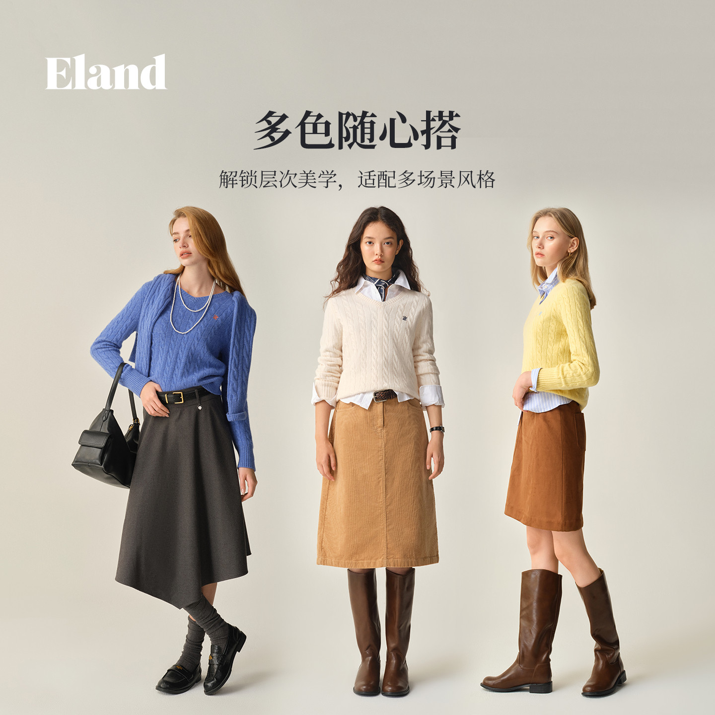 【绵羊毛+山羊绒】Eland衣恋毛衣男女款绞花针织衫2025冬季新款