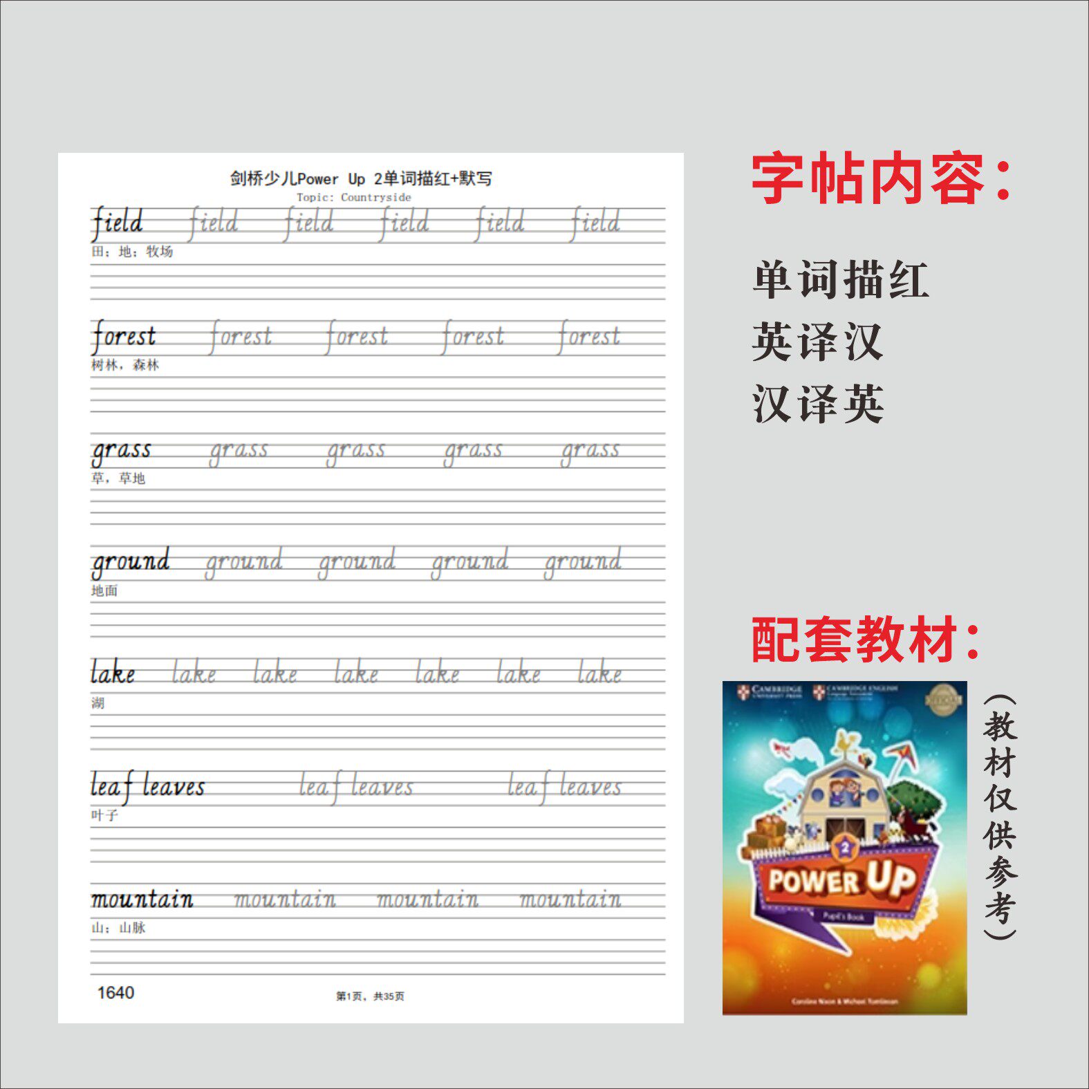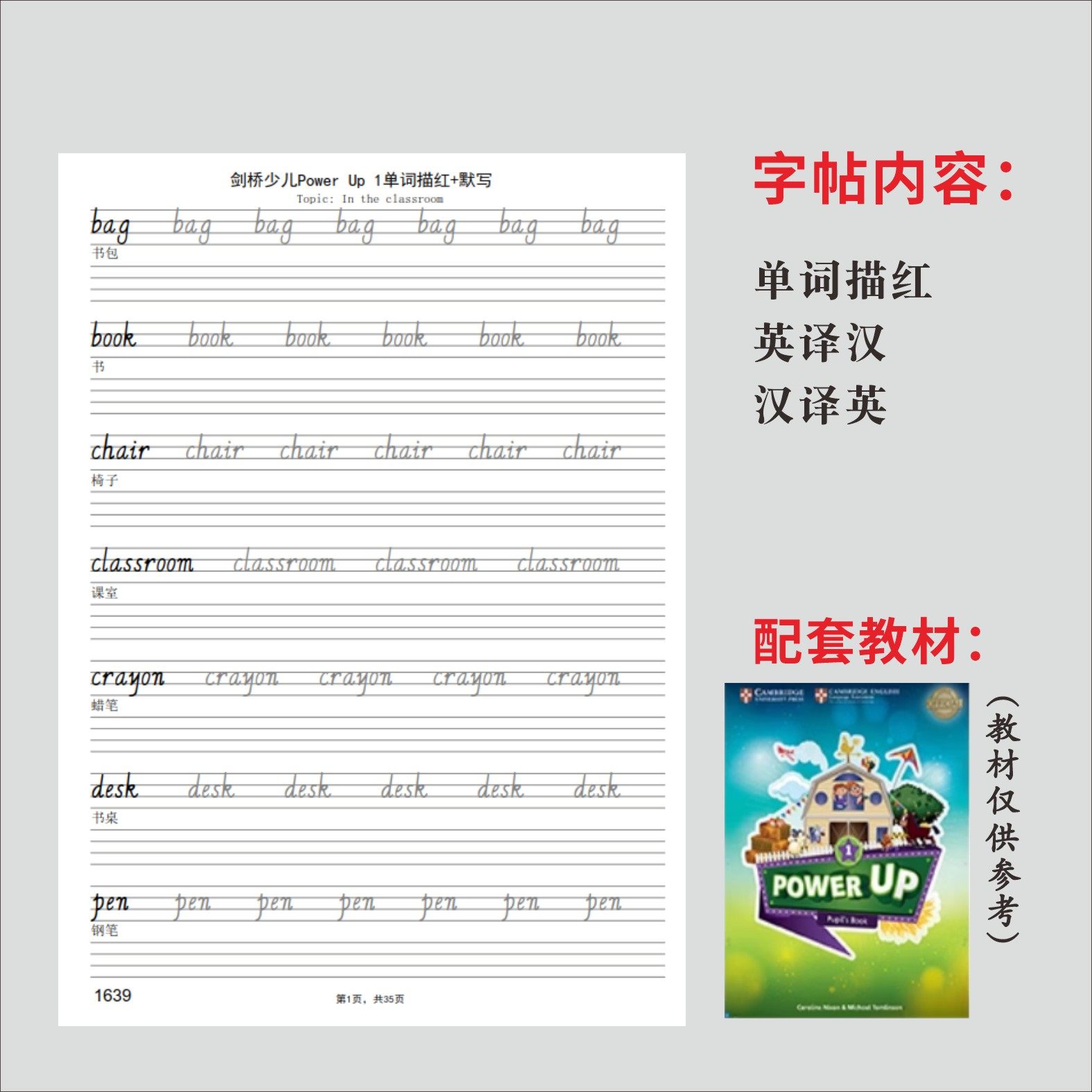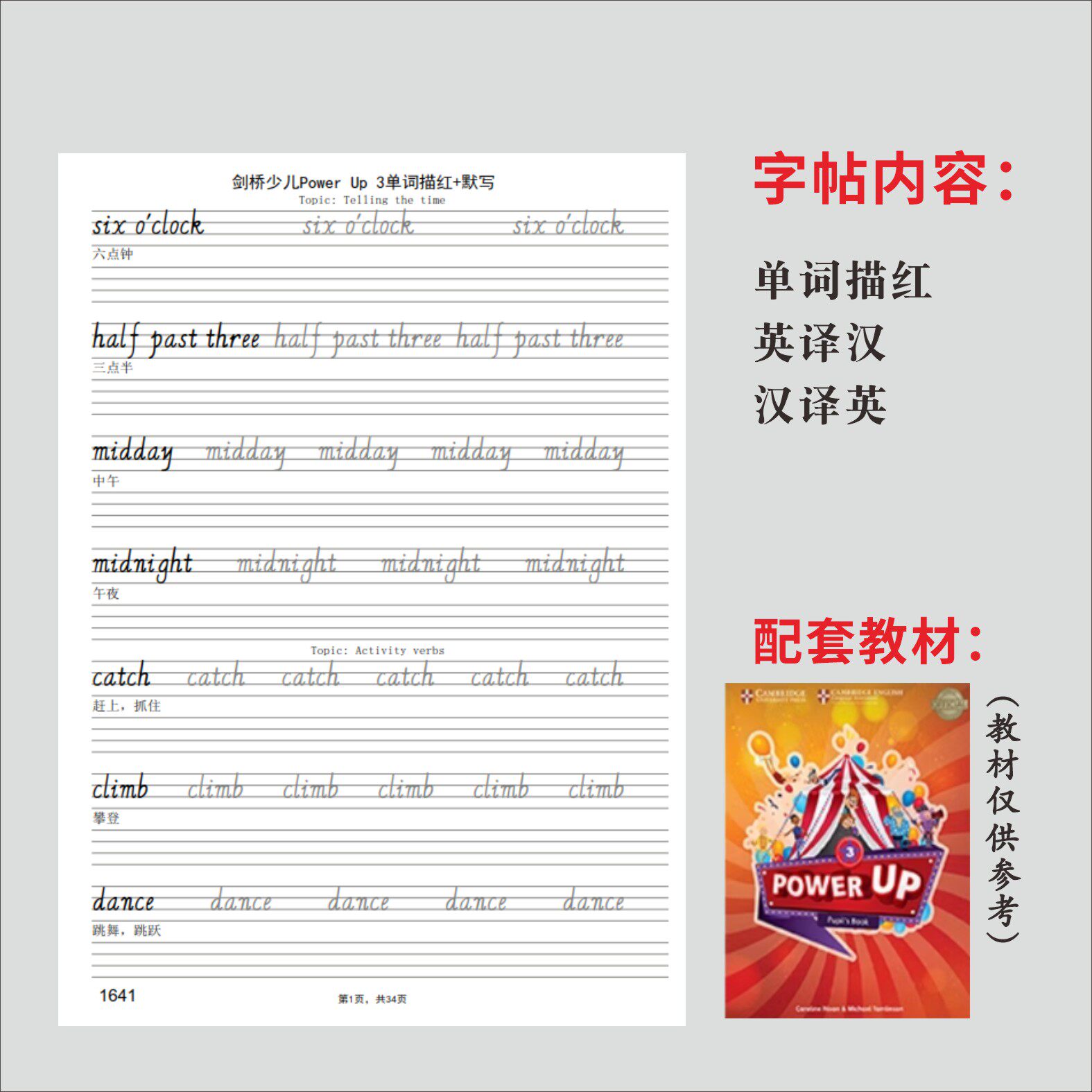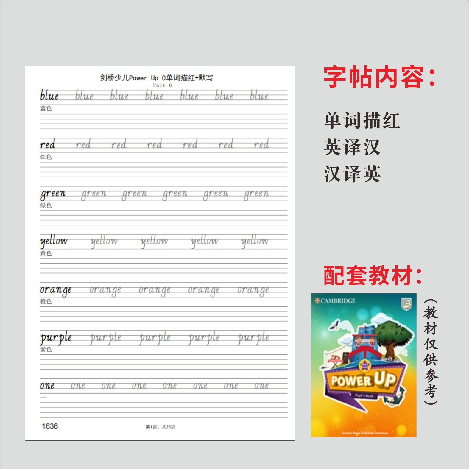 剑桥少儿英语Power Up0123单词描红国标意大利斜体课本同步字帖本