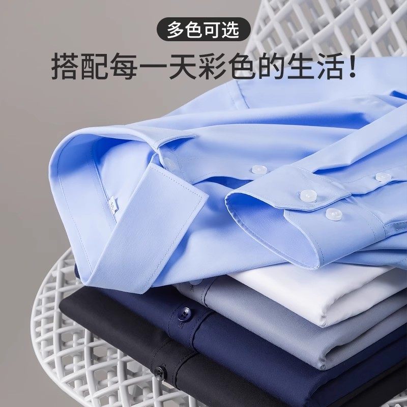 七多男士衬衫修身韩版秋季商务免烫纯色衬衣职业正装白衬衫男长袖