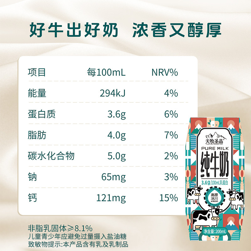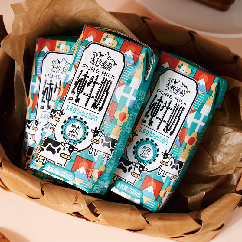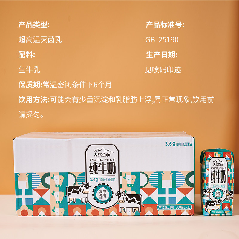天牧圣品高原冰川3.6蛋白纯牛奶3箱200ml*10盒儿童营养早餐无负担