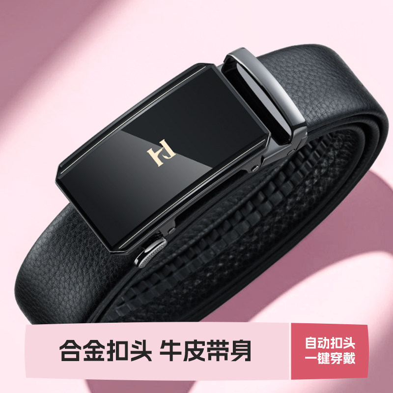 日本2026新款皮带男士裤腰带年轻潮商务简约自动扣裤带结婚真牛皮