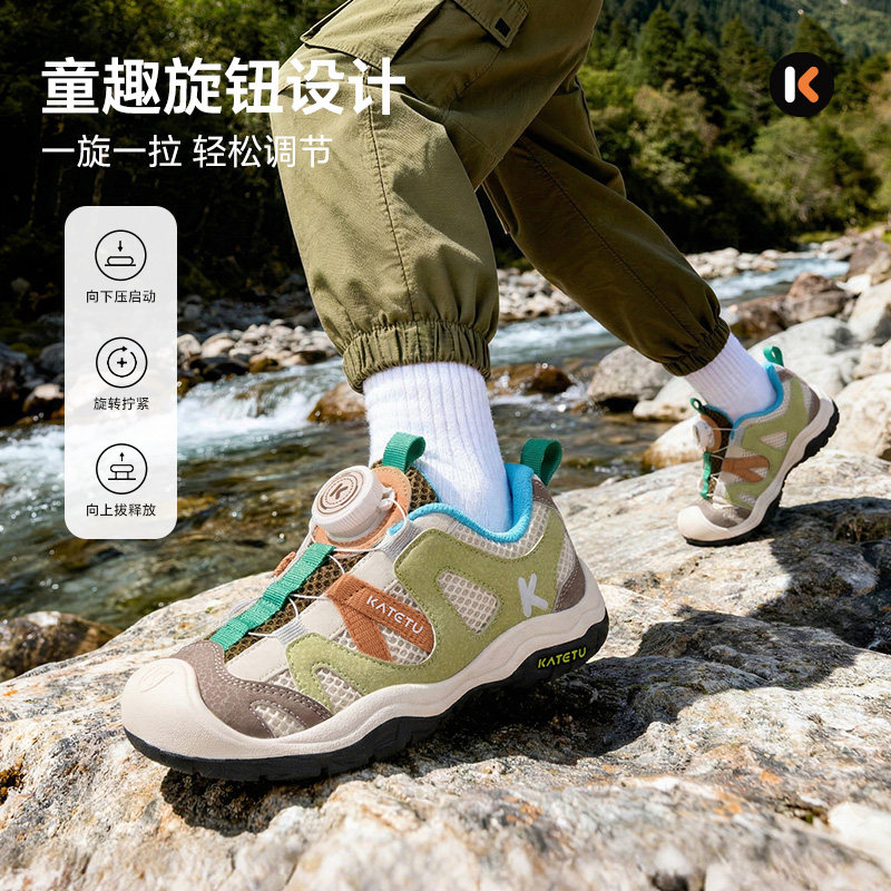 卡特兔童鞋儿童运动鞋2026年春季新品旋钮扣防滑耐磨透气溯溪鞋