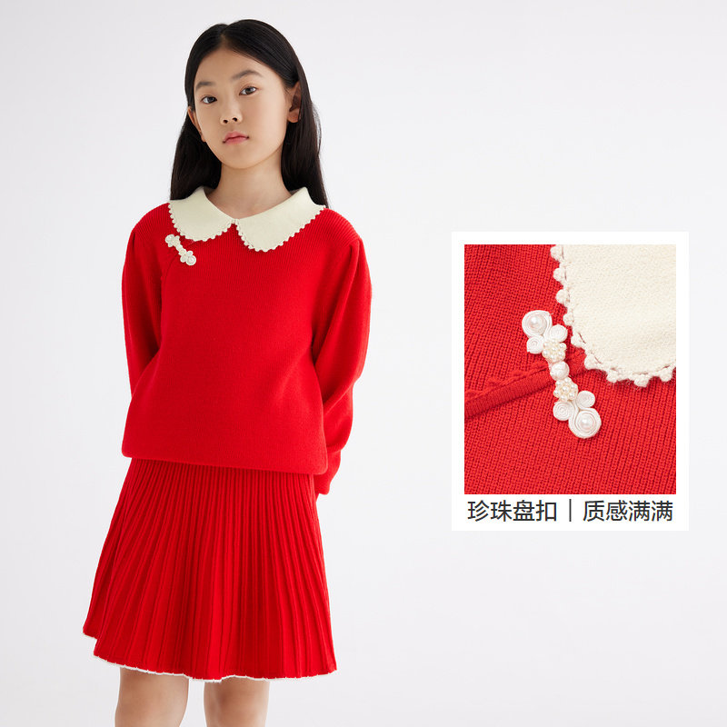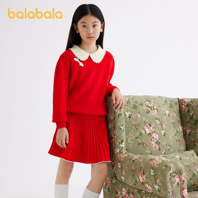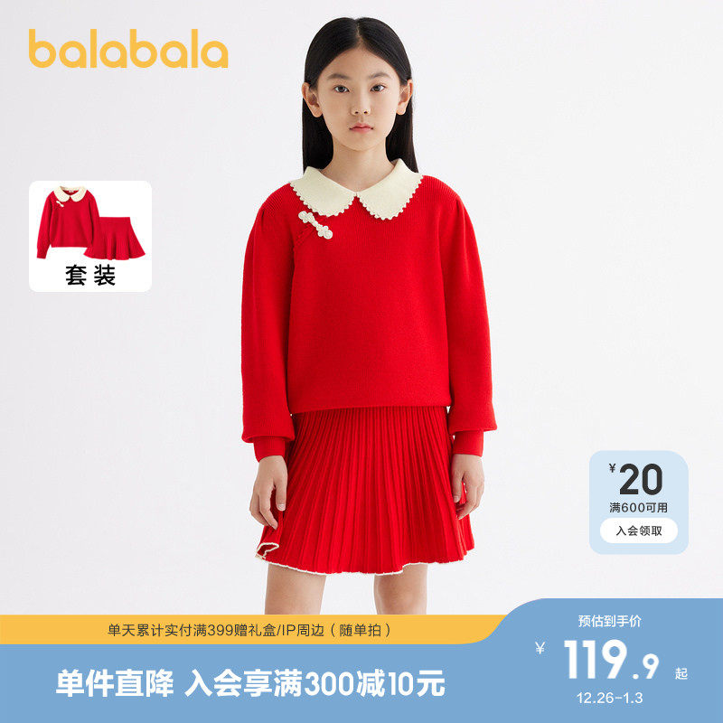 巴拉巴拉童装儿童长袖套装女童秋装2025新款两件套红色拜年服喜庆