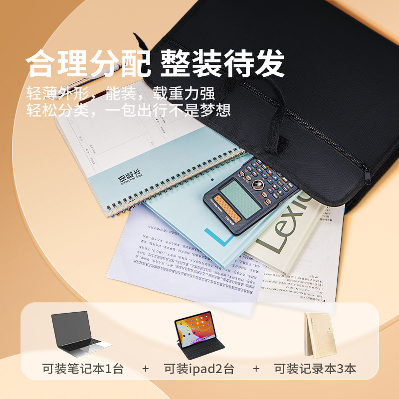 得力手提拉链袋公文包电脑收纳包袋学生用手提袋资料袋商务拉链袋男女办公加厚会议电脑包简约素版