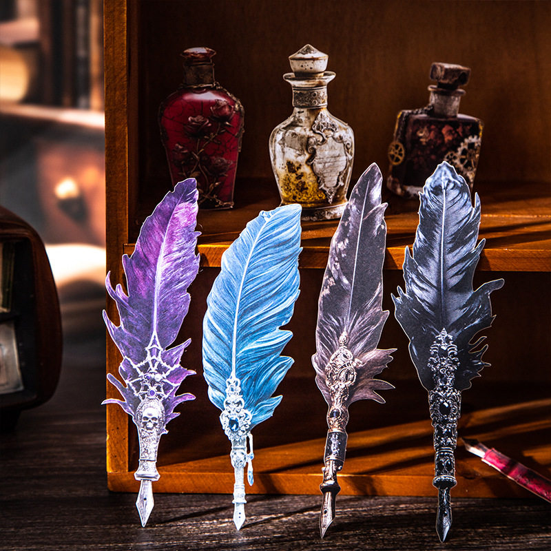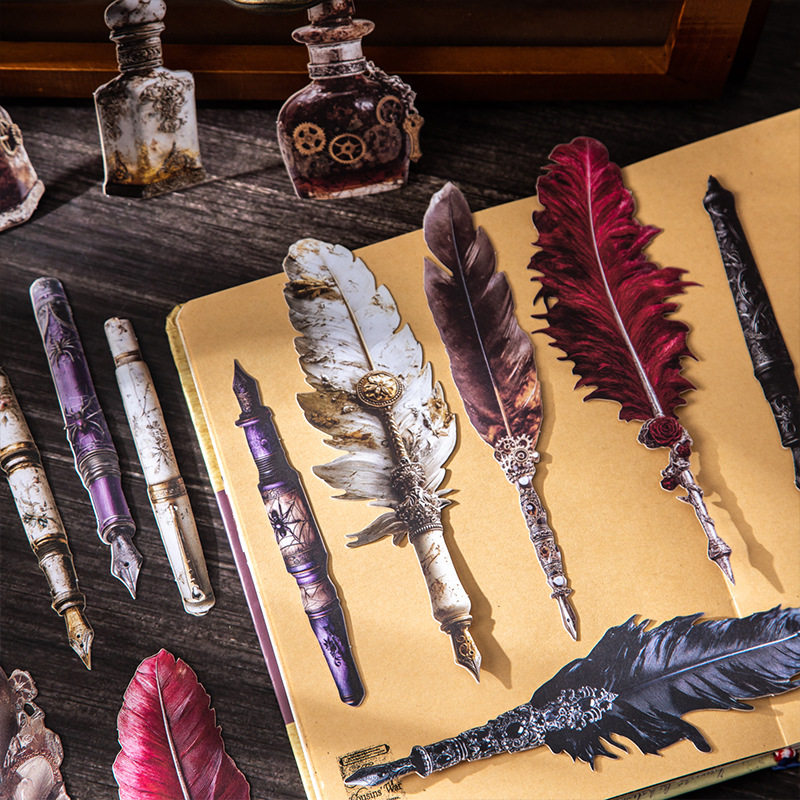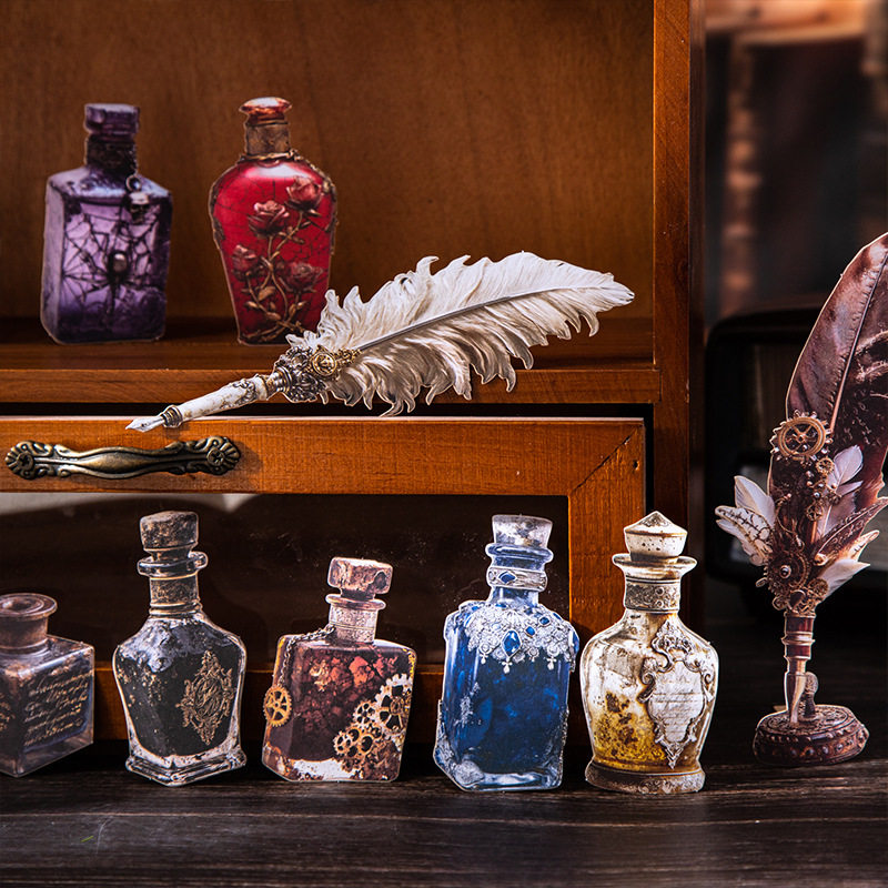 笔墨珍藏家硬卡贴纸羽毛笔墨水瓶子复古董物品做旧华丽装饰DIY