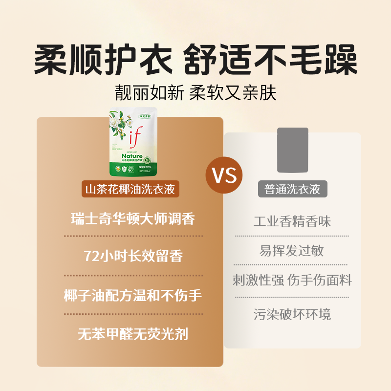 if山茶花香氛洗衣液除菌除螨去渍留香家用袋装100g国货衣物椰子油