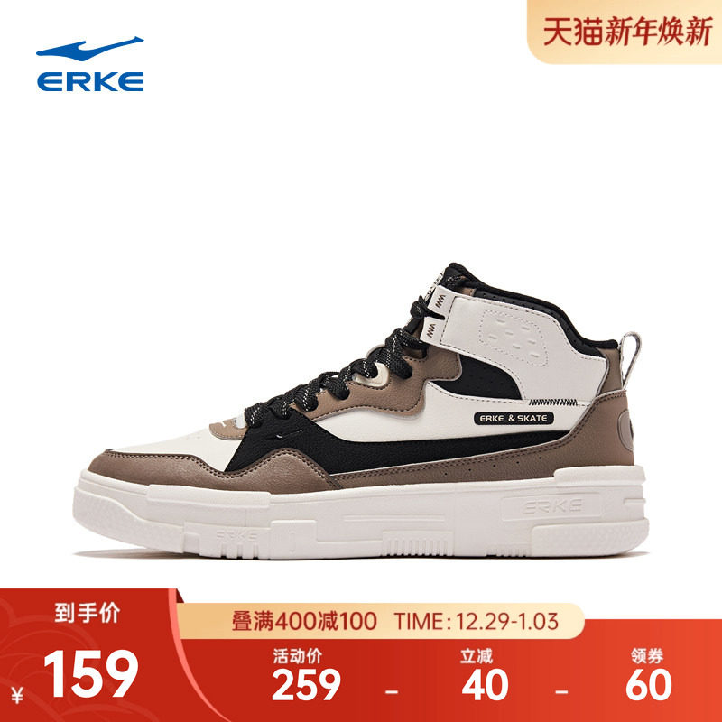 鸿星尔克高帮板鞋男鞋冬季新款鞋子复古契约厚底休闲鞋潮流运动鞋