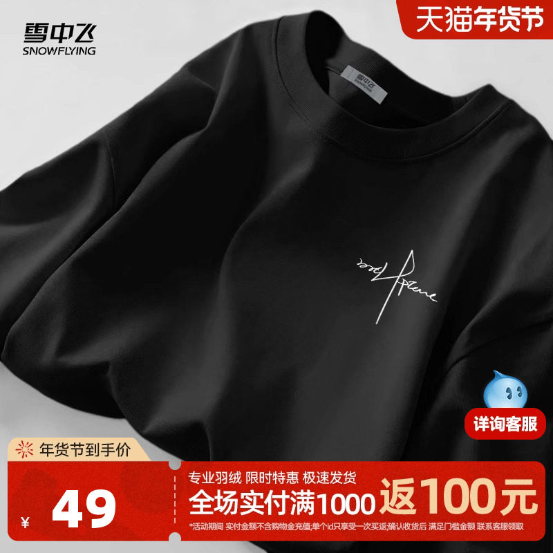 雪中飞长袖t恤男秋季上衣2026新款黑色大码胖子显瘦纯棉打底衫PC