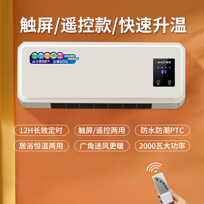 壁挂式取暖器浴室大面积暖风机卧室热风机家用速热小型空调电暖气