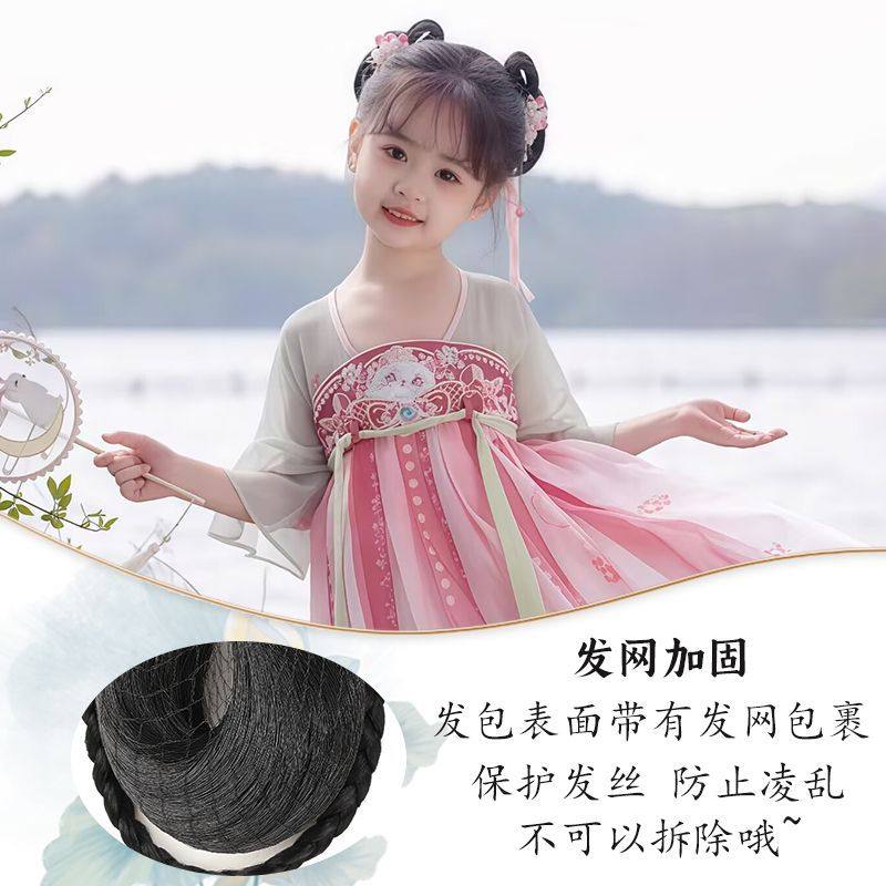 儿童汉服假发一体式古风盘发发髻女童蝴蝶结发包古装头饰垫发造型