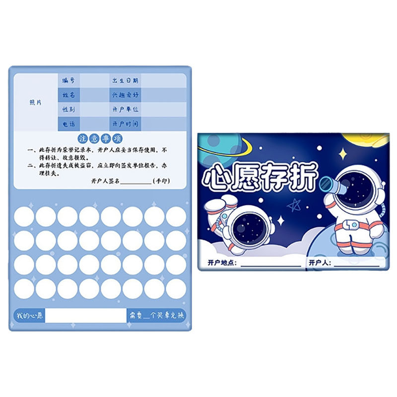 心愿存折小学生奖励孩子的积分卡阅读存折记录本儿童印章收集本贴纸集小红花幼儿园家庭学习读书打卡登记册