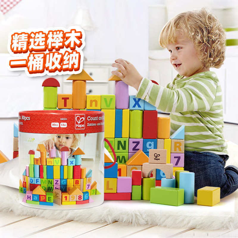 德国hape积木木制80粒早教益智玩具1岁+男女孩启蒙儿童生日礼物