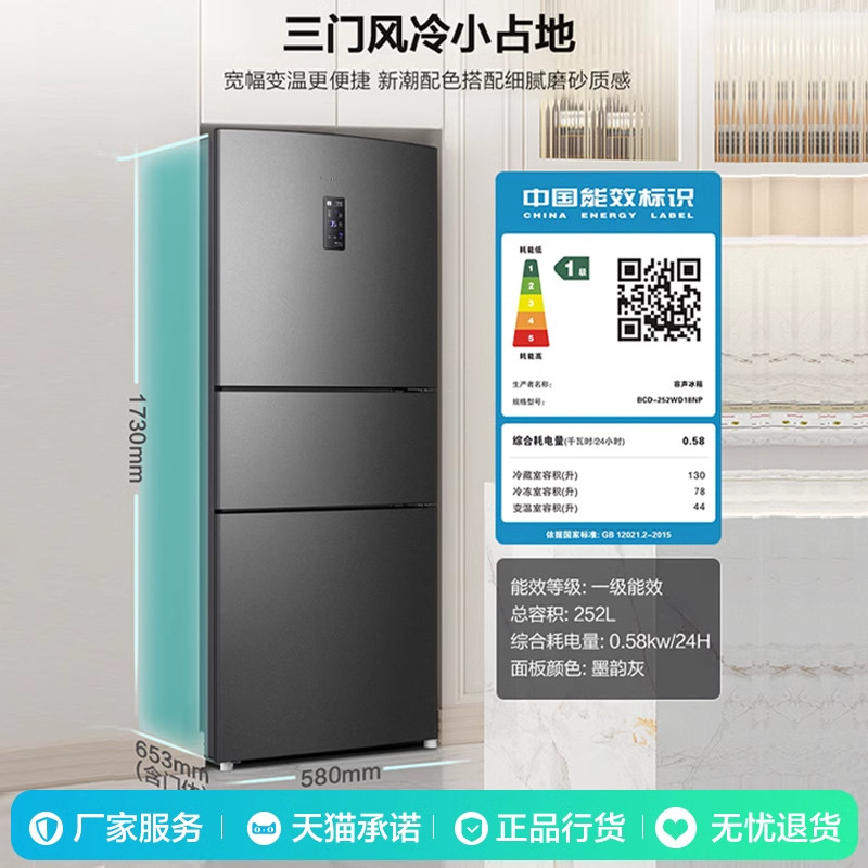 容声冰箱252L升单开三开门变频风冷无霜家用一级能效小型官方正品