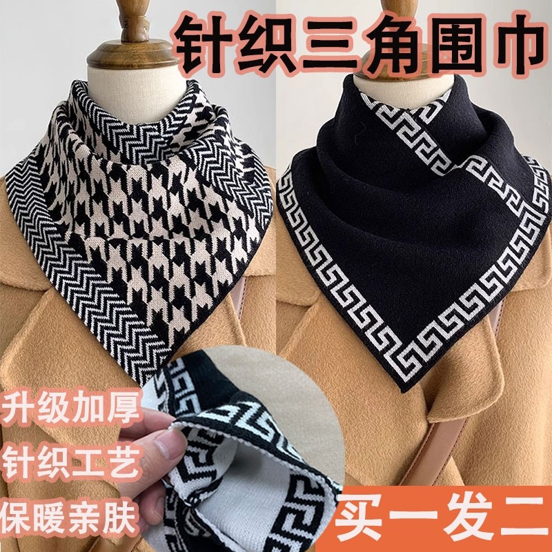 2025新款针织三角巾护颈小围脖秋冬保暖厚衣领防脏脖套女假领黑白