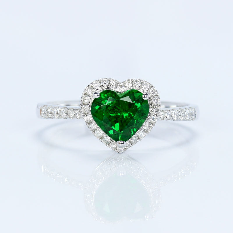18K白金天然心形沙弗莱戒指 石榴石绿色宝石镶钻石女款指圈可定制
