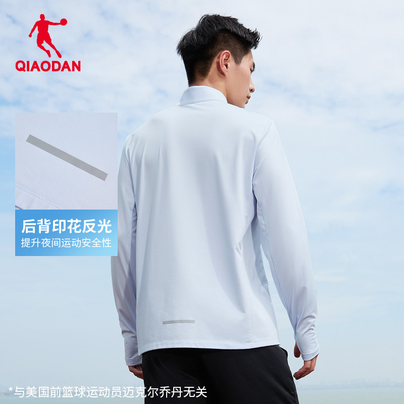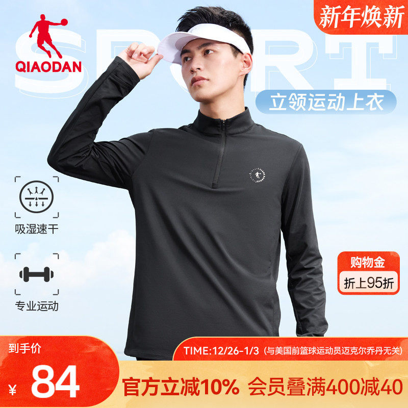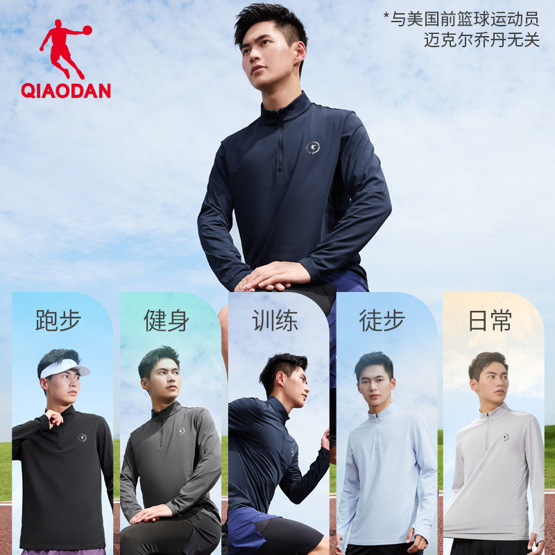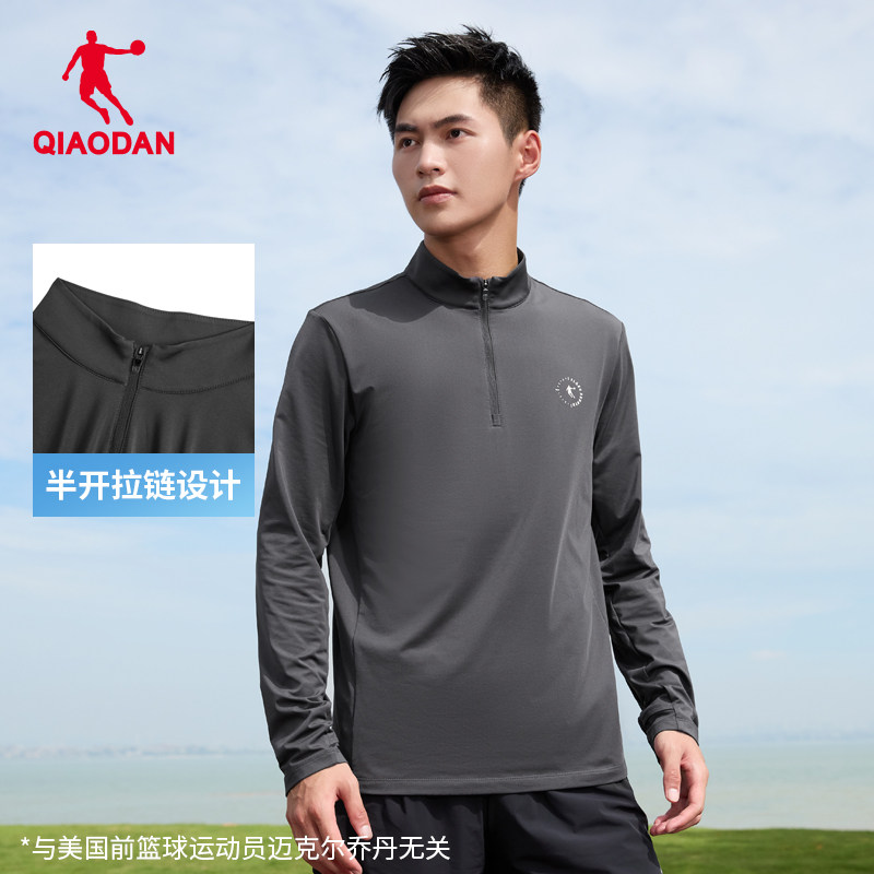 乔丹磨毛薄绒长袖T恤男冬季新款半拉链吸湿速干跑步内搭运动上衣
