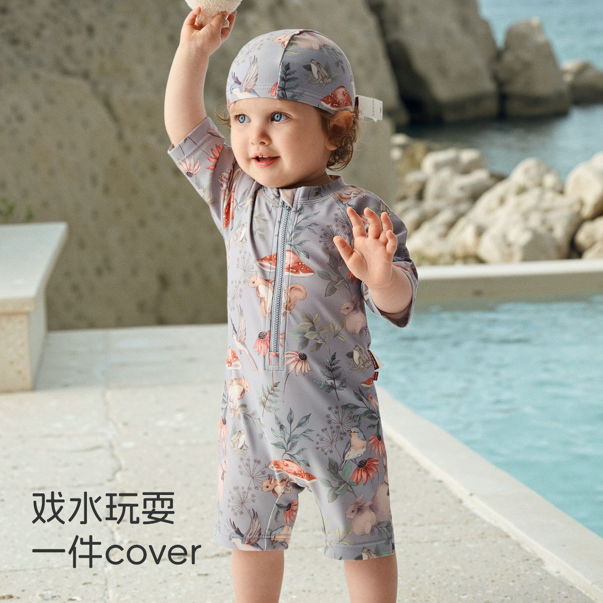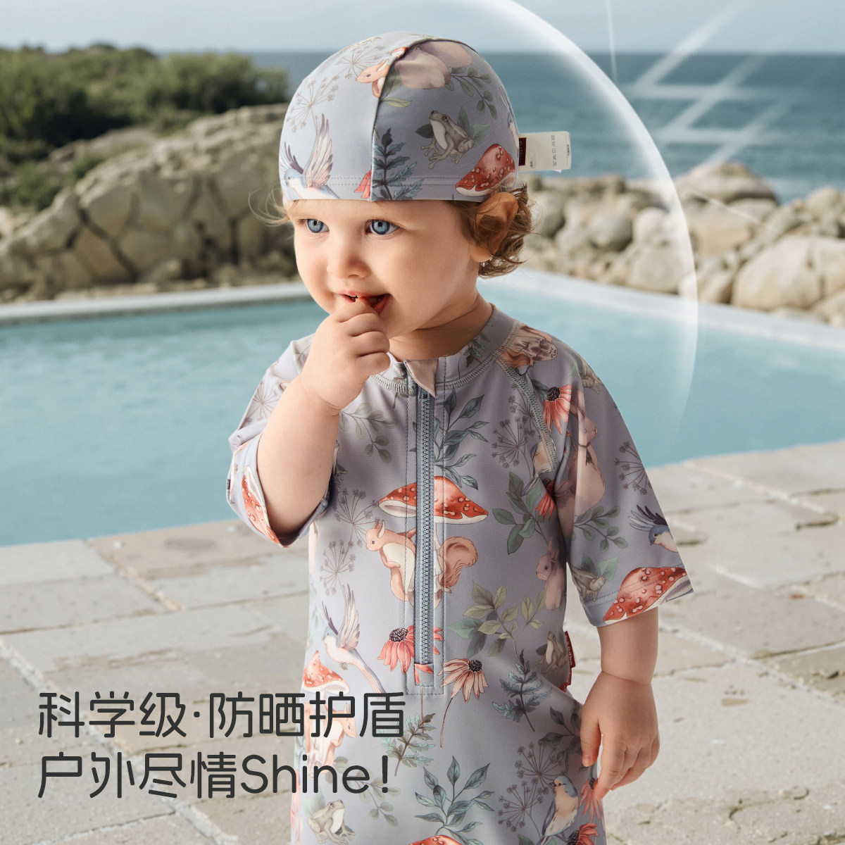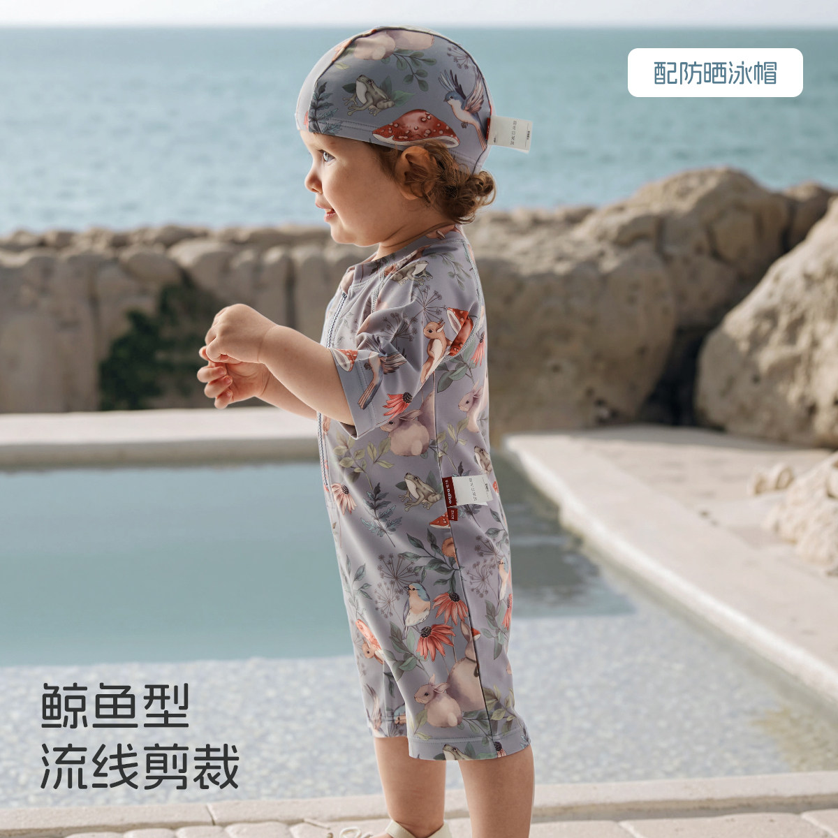 【沐水溶花】aqpa爱帕男女宝宝防晒泳衣套装儿童婴儿短袖连体可爱