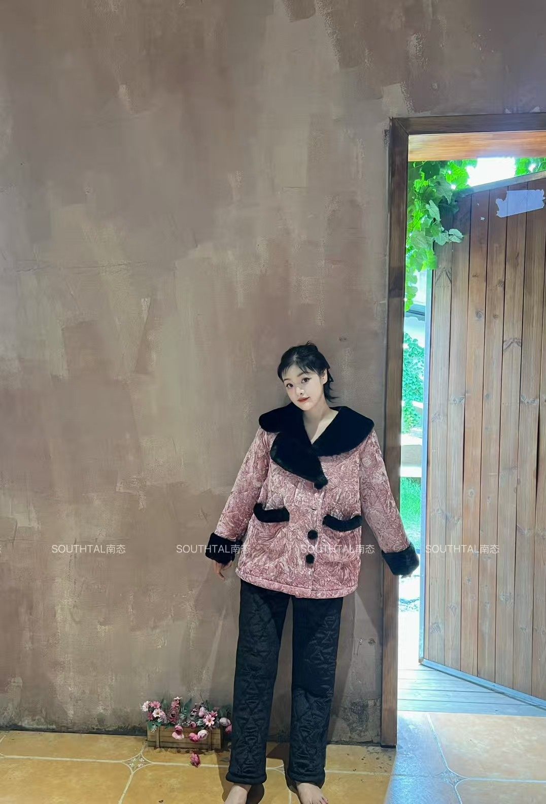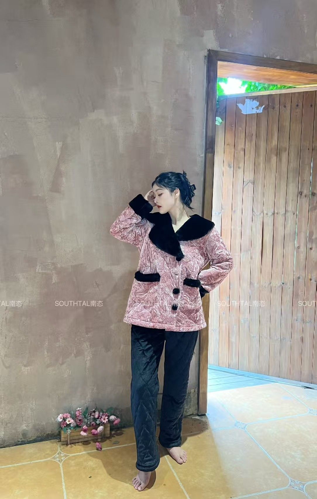 南态暮年三层夹棉加绒加厚可外穿女士甜美冬季睡衣套装