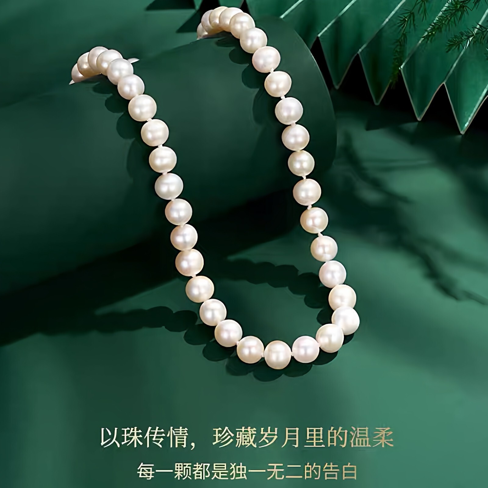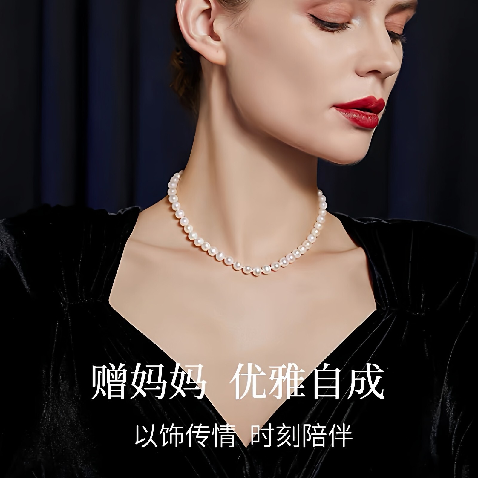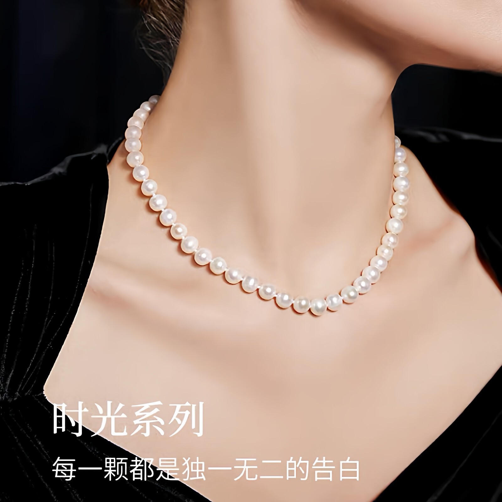 梵宝雅阁诸暨淡水珍珠项链女S925银近圆强光全珠链经典百搭款礼物