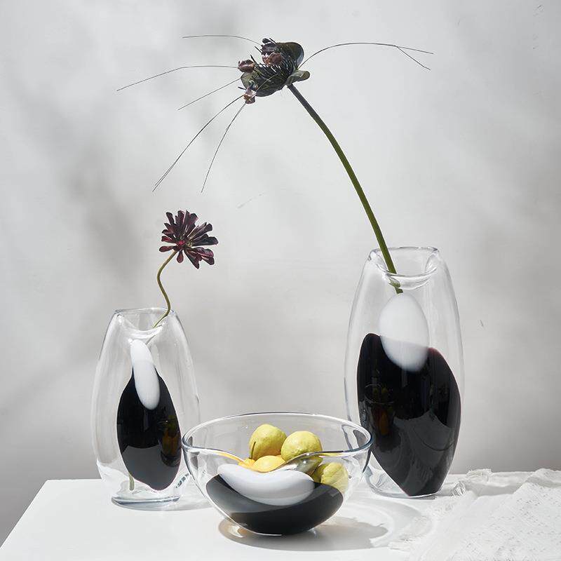 现代大号渐变斑点透明直筒创意炮弹玻璃花瓶大口果盘台面居家饰品