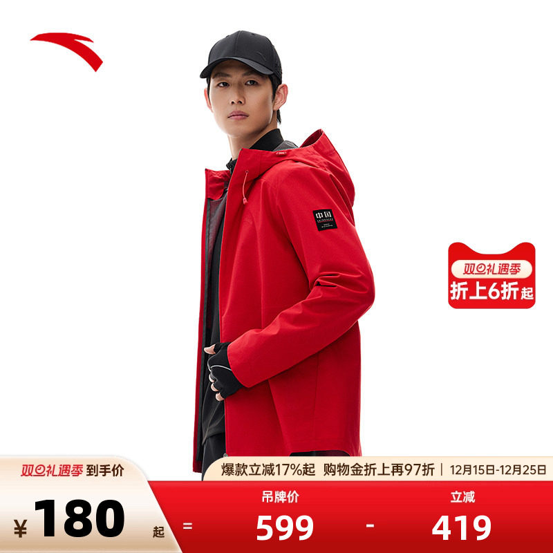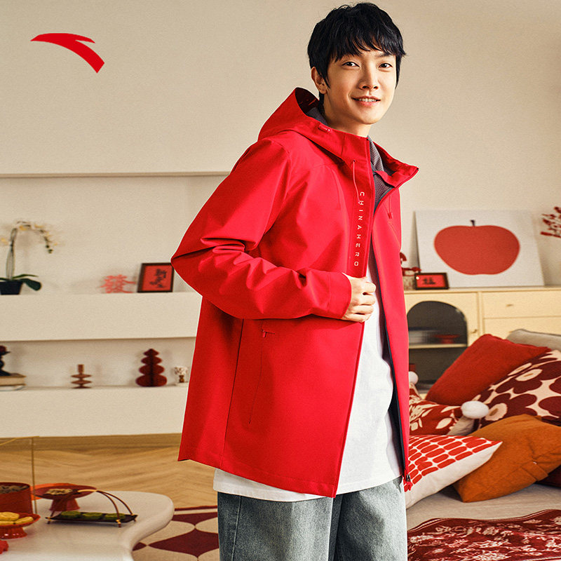安踏本命年红色连帽运动外套男士秋冬季防泼水梭织夹克休闲上衣