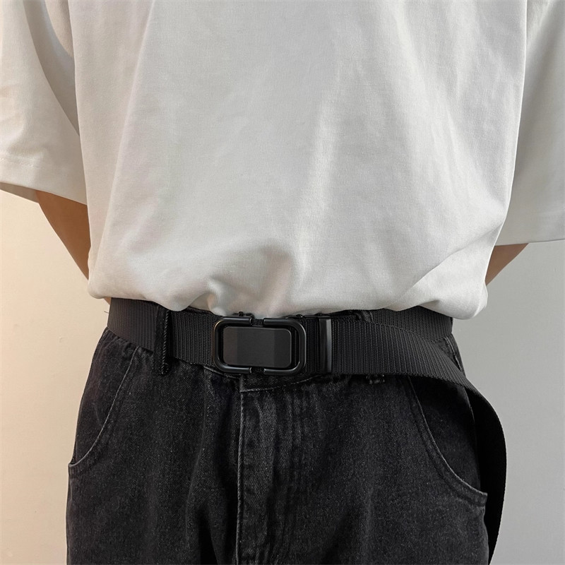 对插扣弹力皮带男自动扣时尚百搭潮流男士腰带户外尼龙帆布裤腰带