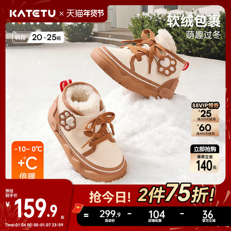 卡特兔婴儿学步鞋2025冬季宝宝鞋防滑防水加绒保暖高帮雪地靴棉鞋